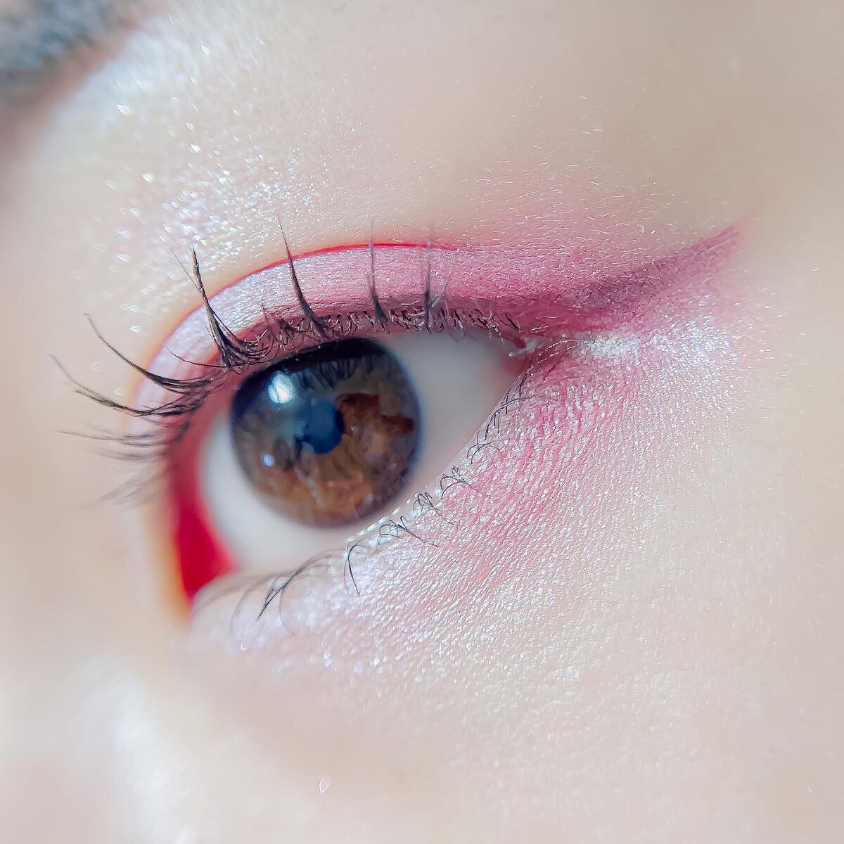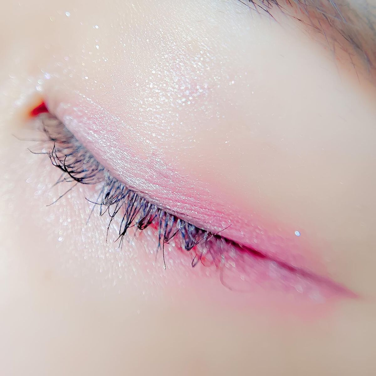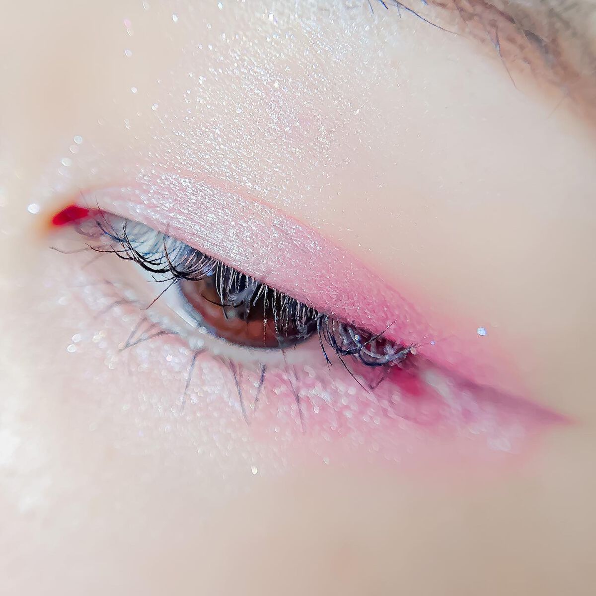 ピンクにグレージュも良いですね👌💗 今日は可愛らしい感じにしてみました💕 上下瞼黒目〜目頭側にラメを塗ってキラキラさせております🤩 目尻はマットのピンクを濃いめに重ねて💗 グレージュのアイライナーと相性◎