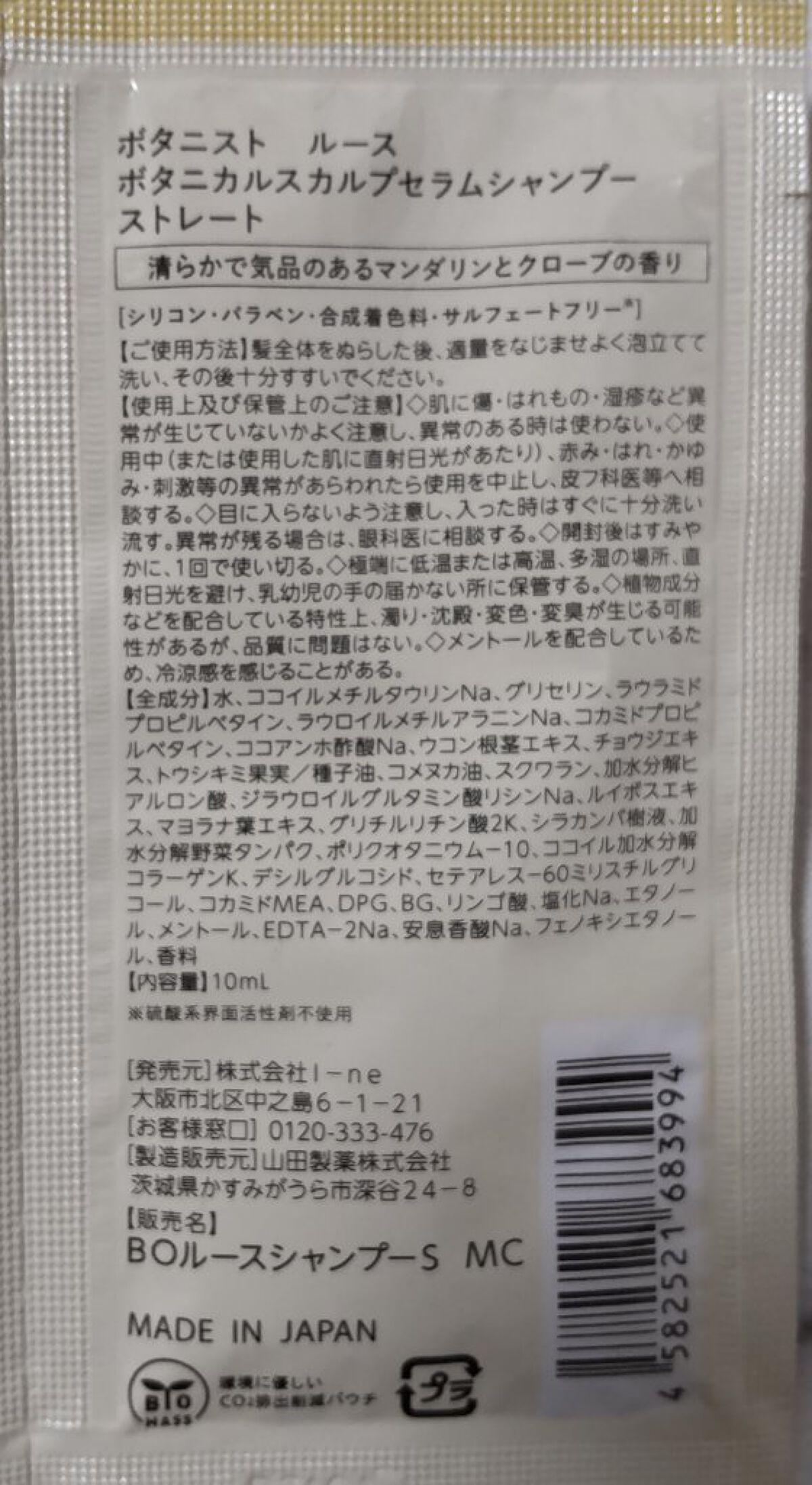 商品詳細情報BOTANIST ルース ボタニカルスカルプセラム シャンプー・トリートメント(ストレート)