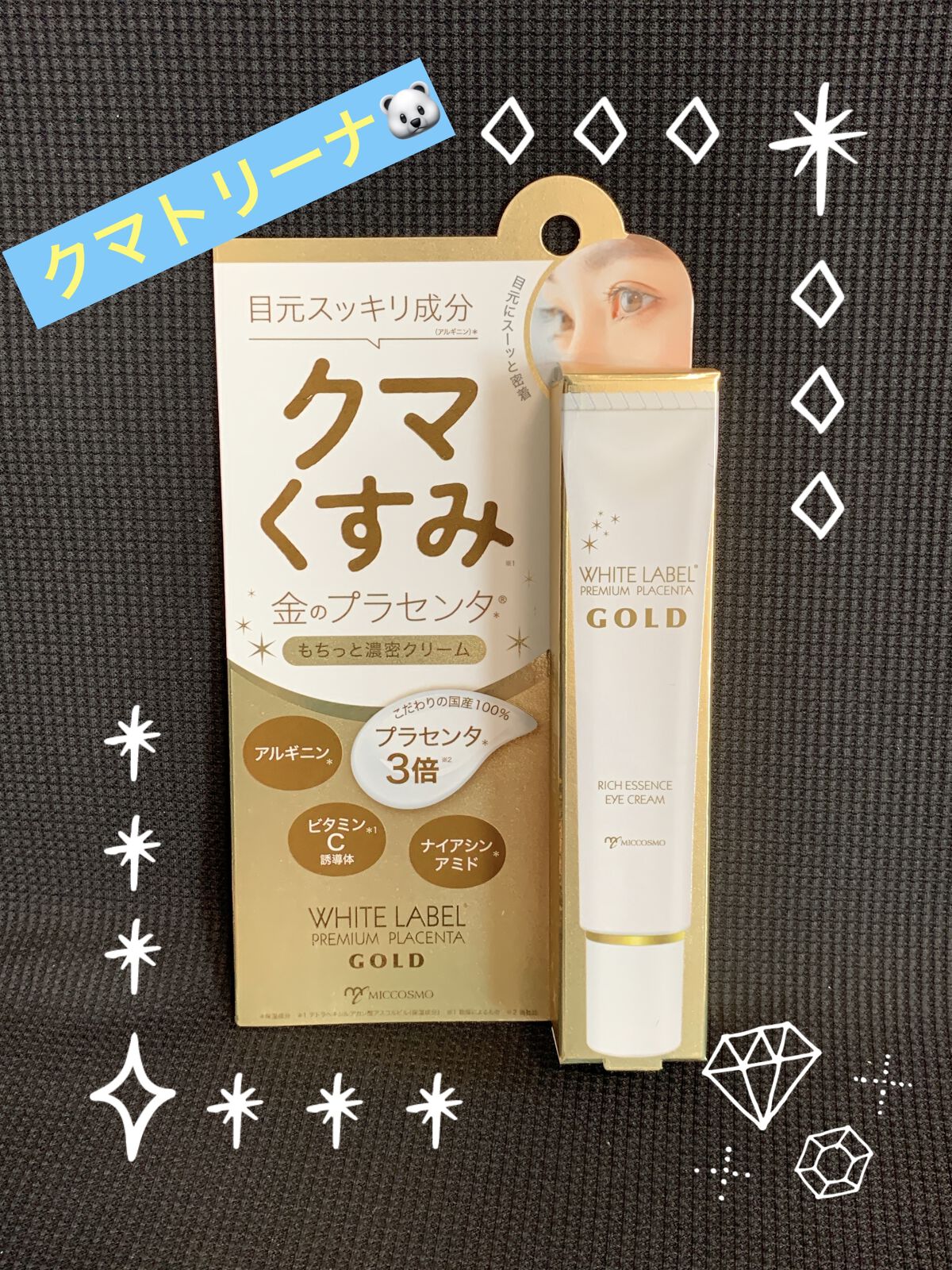 目元あかるく!⭐️#金のプラセンタもっちり白肌濃クマトリーナ25g—————————————————なにもしなかったら目元どんよりする。クマがある状態でマスクをして目元しか出なくなると、すごく老け見えする。絶対早めに対策した方がいいよ〜!『金...
