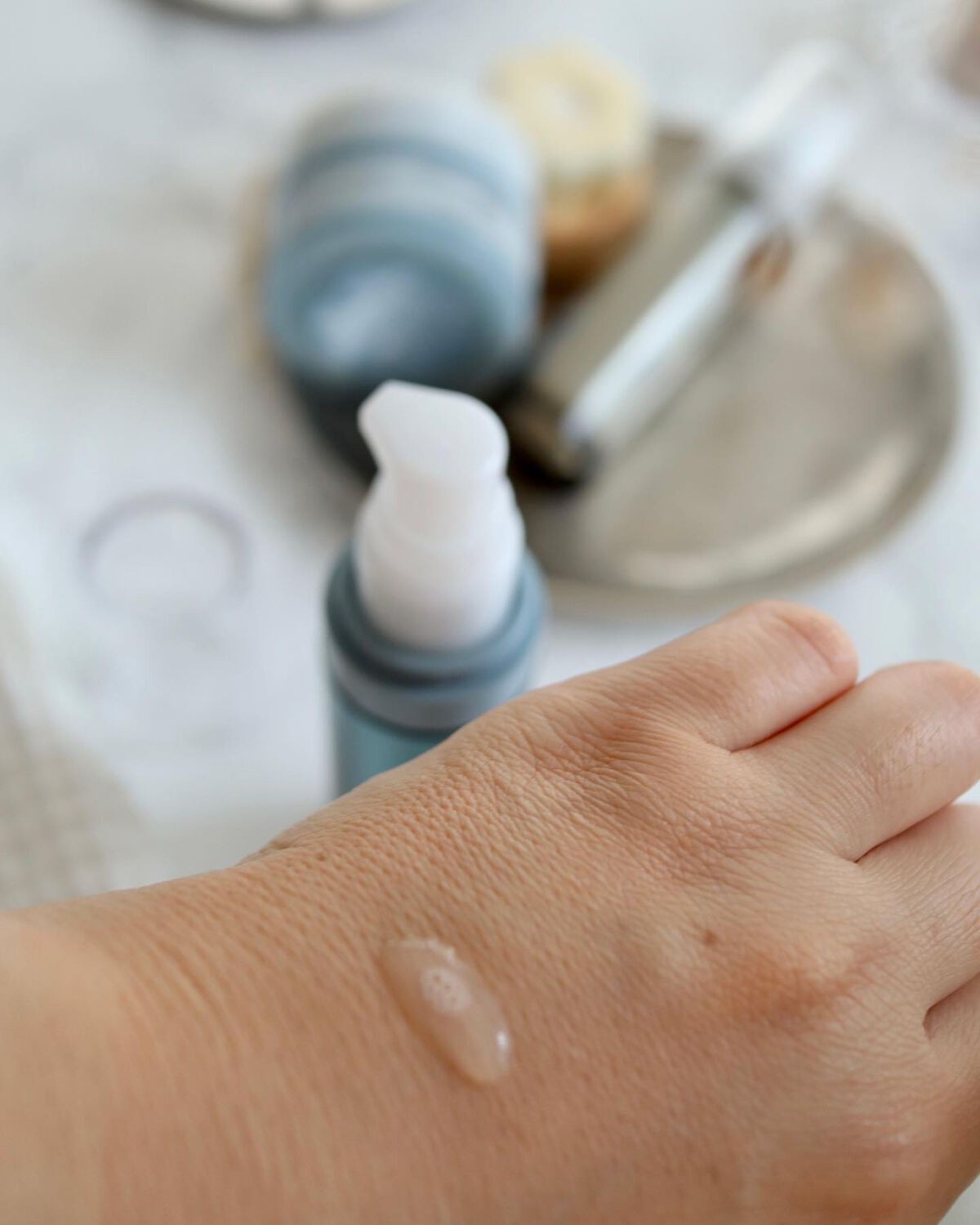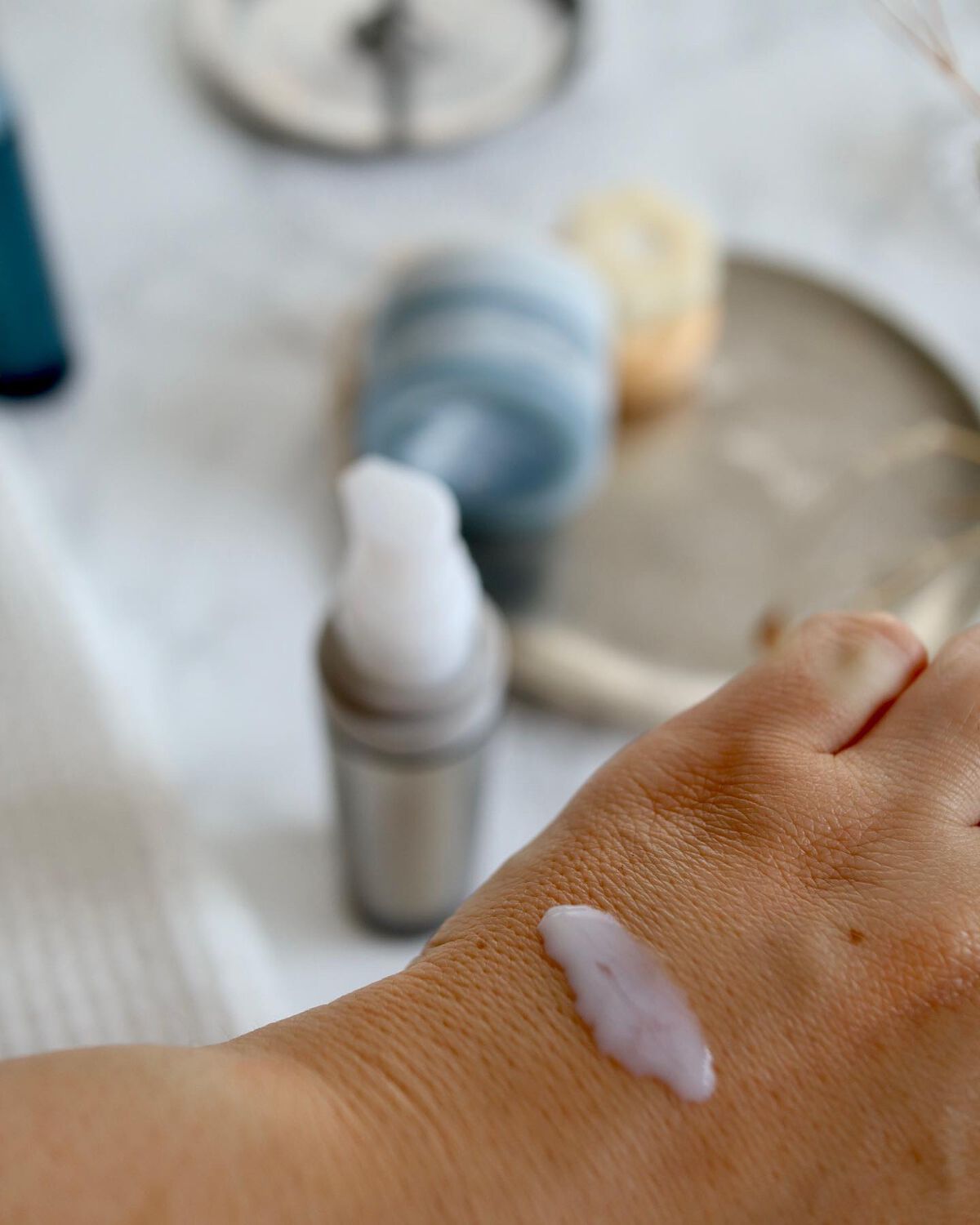 贅沢に美容成分を配合しているクリームは思ったより軽く、みずみずしく、素肌によくのびます。べとつきはしないかな。 プッシュしてエアレスボトルから新鮮なクリームが出てくるから量も調節しやすい🙆♀️ クリームはジェルのようにみずみずしいよ。少し高級化粧品によくあるような独特の香りがします。 ピンク色のエアーレスのボトル プッシュするとクリームが出てきます。