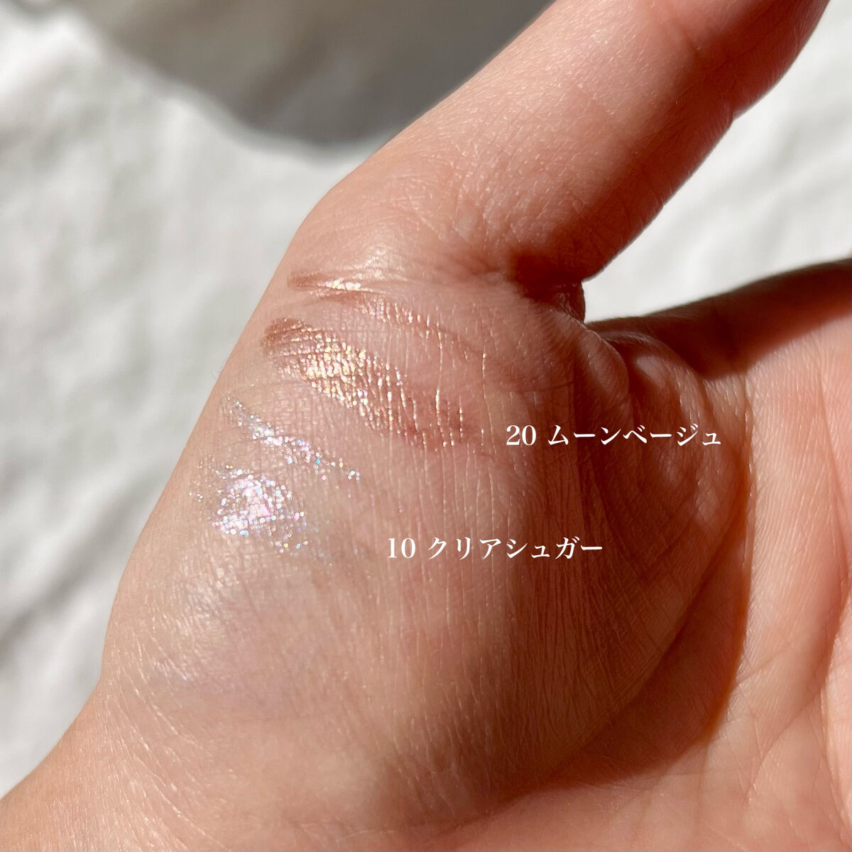 - <10 クリアシュガー> 水、エタノール、BG、ペンチレングリコール、アクリレーツコポリマー、AMPD、カルボマー、フェノキシエタノール、ポリビニルアルコール、ヒドロキシプロピルメチルセルロース、EDTA-2Na、EDTA-3Na、ヒアルロン酸Na、ハイビスカス花エキス、ビルベリー葉エキス、ホウケイ酸(Ca/Al)、(PET/ポリメタクリル酸メチル)ラミネート、合成フルオロフロゴパイト、酸化チタン、Al、シリカ <20 ムーンベージュ> 水、エタノール、BG、ペンチレングリコール、アクリレーツコポリマー、AMPD、カルボマー、フェノキシエタノール、ポリビニルアルコール、ヒドロキシプロピルメチルセルロース、EDTA-2Na、EDTA-3Na、ヒアルロン酸Na、ハイビスカス花エキス、ビルベリー葉エキス、ホウケイ酸(Ca/Al)、合成フルオロフロゴパイト、マイカ、酸化チタン、酸化鉄 <30 ハートフィズ> 水、エタノール、BG、ペンチレングリコール、アクリレーツコポリマー、AMPD、カルボマー、フェノキシエタノール、ポリビニルアルコール、ヒドロキシプロピルメチルセルロース、EDTA-2Na、EDTA-3Na、ヒアルロン酸Na、ハイビスカス花エキス、ビルベリー葉エキス、合成フルオロフロゴパイト、ポリブチレンテレフタレート、酸化チタン、ホウケイ酸(Ca/Na)、ポリメタクリル酸メチル、マイカ、酸化鉄