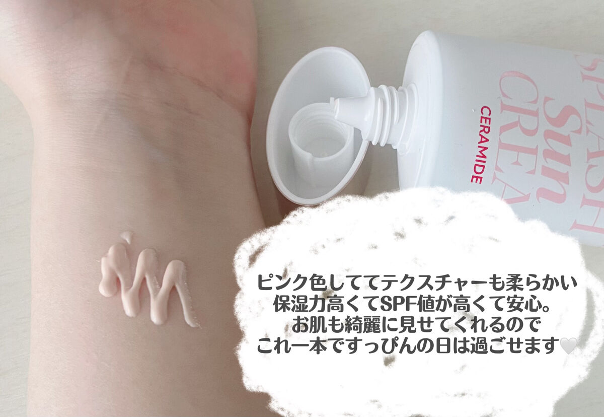 - スキンケア成分をプラスして潤いUP*!*自社製品内比較 化粧ノリが良くなる日焼け止め。 セラミド配合で乾燥からお肌を守り、潤いをキープするしっとりとしたピンクベースのクリーム。 水分感たっぷりでさらさらとした塗り心地。 自然なトーンアップ効果で透明感のあるツヤ肌をつくります。 ワントーン明るく見せたいとき、乾燥肌の方におすすめです。