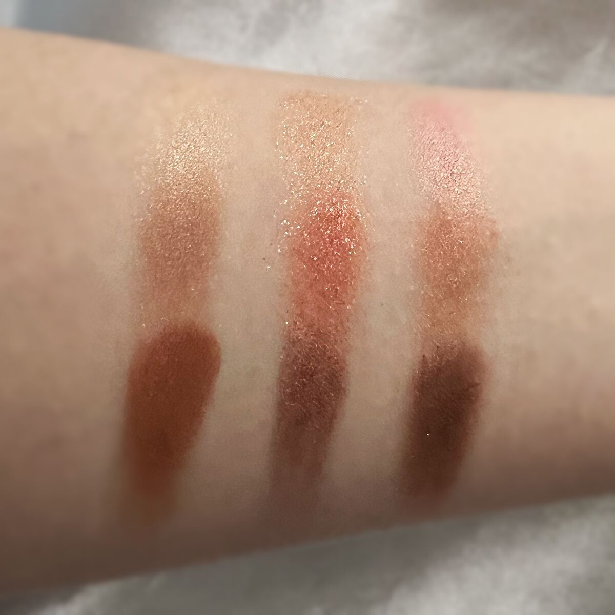04 ザ・ナラティブ はクールトーンの配色で グレーカラーとかくすんだカラーが多くて 組み合わせは昨日紹介した03より難しいかもしれません。 ヒンスいつも通りの滑らかで発色が良い ただしこのパレットのポイントカラーの ブラックカラーは濃い色なので、キレイに伸ばせないです😢 一番左上はクリームタイプのアイシャドウです 恐らくアイシャドウベースだと思います。 今回の新色03と04 個人的には03の方が気に入りです🌷❤️