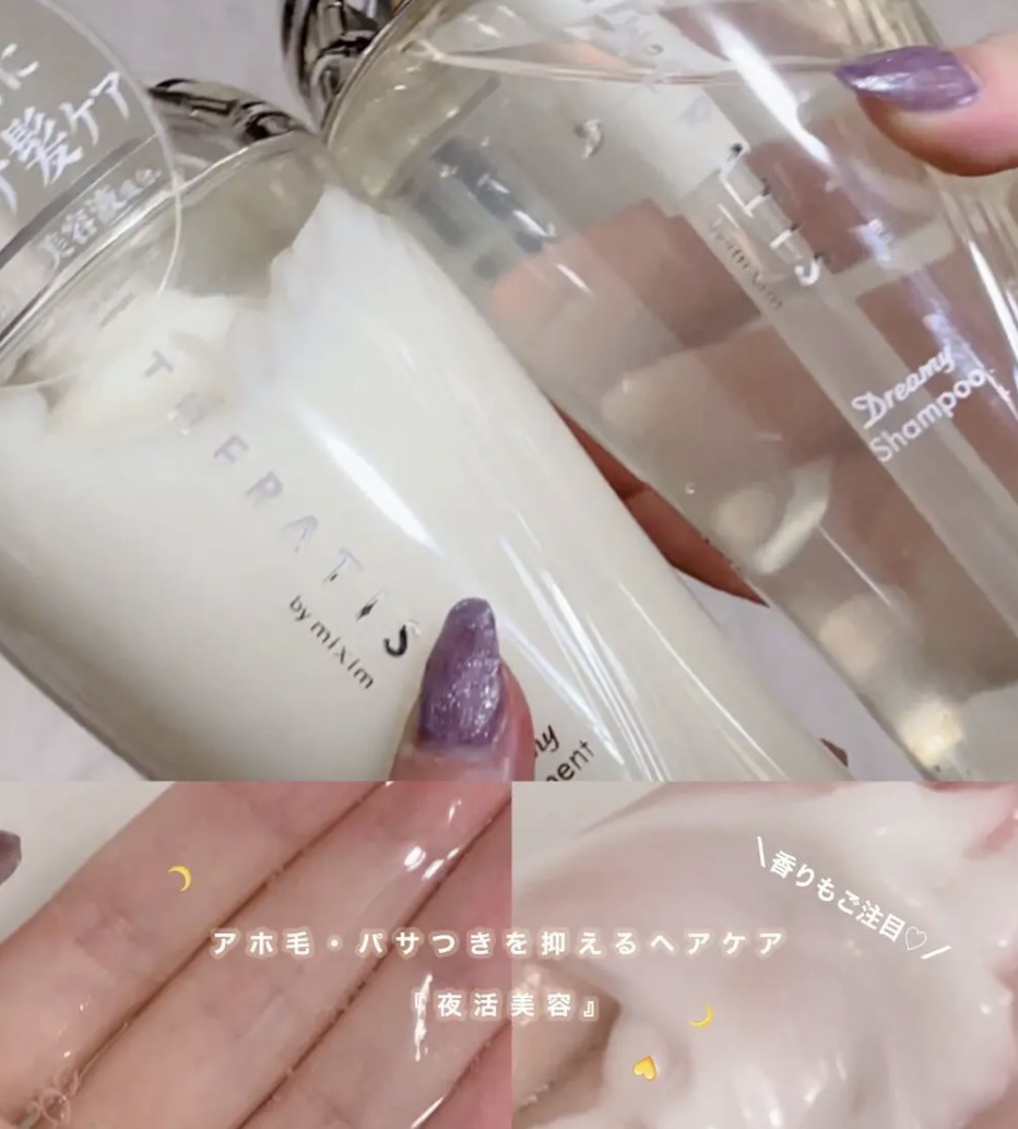 \かなり良かった…!/THERATISドリーミーモイストシャンプー/ヘアトリートメント各¥1,540・シャンプー泡立ち★★★★★洗浄力★★★★☆きしみにくさ★★★★☆香りの持続力★★★★☆イランイランアロマ香り・トリートメントサラサラ★★★★...