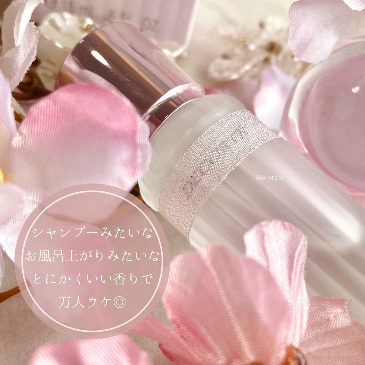 - THE ESSENCE OF ETERNAL ELEGANCE 意識にさえ、纏うように。 優美な桜に包まれたように無垢でやわらかな限定フローラルフルーティムスクの香り。 繊細でやわらかな桜に、みずみずしくフレッシュなローズの香りが出会い、透明感の中にもフローラルの力強さを表現。ラストはパウダリーなイリスが余韻を残し、桜の花を愛でるように、やさしく、あたたかく包み込みます。