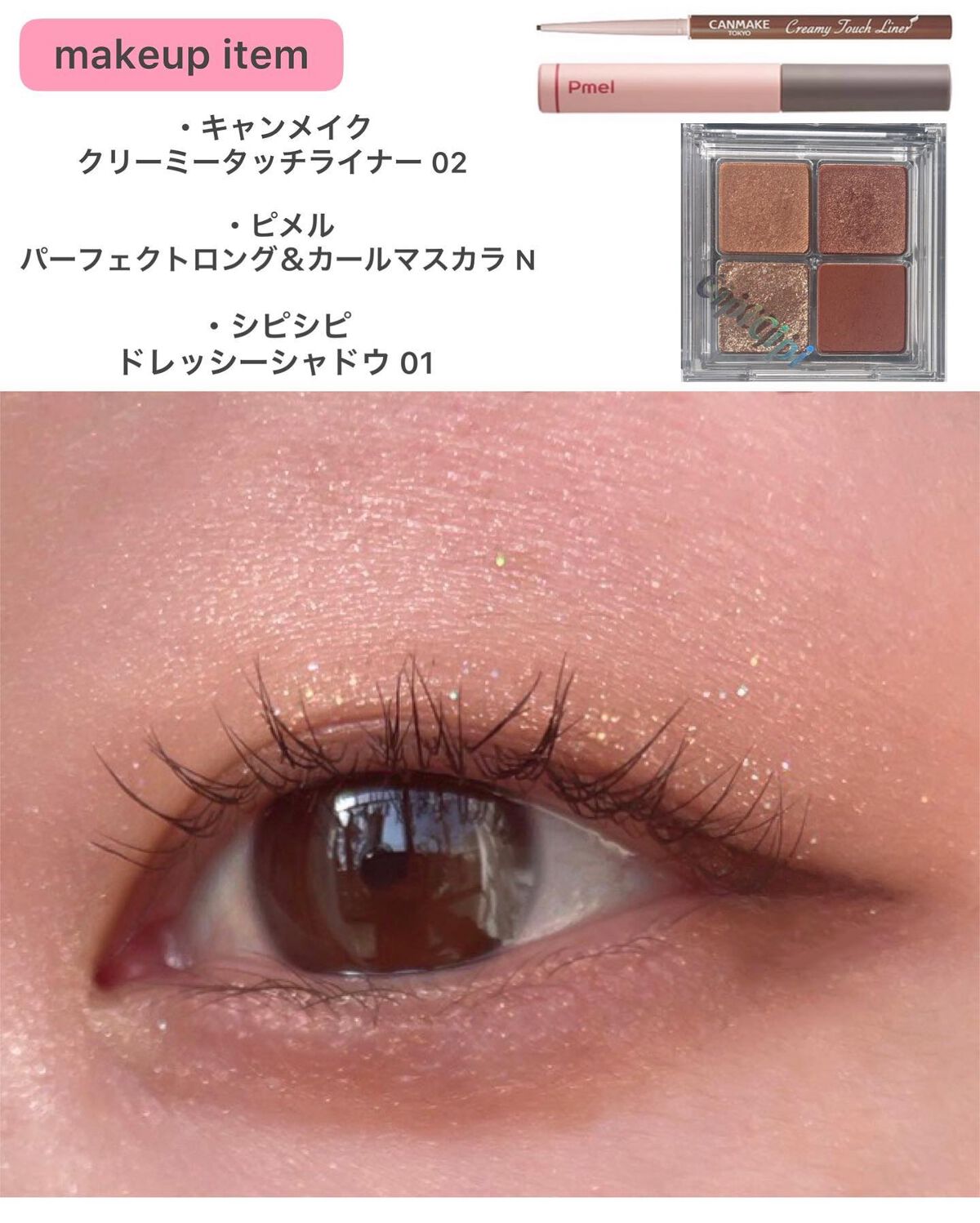 目が1.5倍に見えるアイメイク方法👀 完全自己流なので、参考程度に見てくださると嬉しいです♡ キャンメイククリーミータッチライナー 02 ミディアムブラウンを目尻にひく