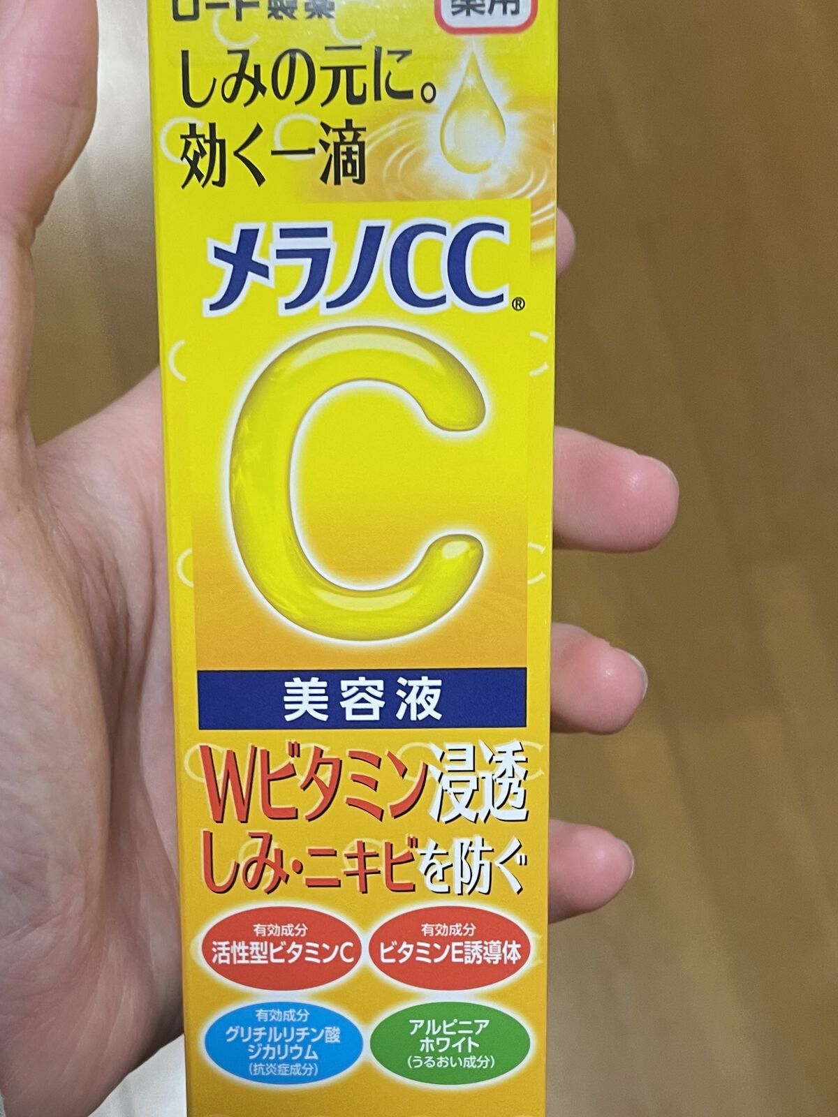 - Wビタミン配合。しみ・ニキビを防ぐ。 透明感にこだわった美白有効成分「活性型ビタミンC*1」配合の薬用美白美容液。 美白有効成分「活性型ビタミンC*1」と整肌成分「ビタミンE誘導体」をWで配合。2種類のビタミンが肌にダイレクトに働きかけます。ロート独自の浸透処方で、美白有効成分が角質層すみずみまで届き、メラニンの生成を抑え、しみ、そばかすを防ぎます。 さらに2つの有効成分*2とうるおい成分アルピニアホワイトも配合。気になるニキビもしっかり予防し、ニキビ痕が気になる肌にもうるおいを与えて肌を整えます。 ベタつかない使用感のリキッドタイプ。使いやすい滴下式チューブです。化粧水の後でお顔全体に使ったり、お手入れの一番最後でポイント使いをしたり、お好みで朝晩のお手入れにどうぞ。 *1:アスコルビン酸、*2:イソプロピルメチルフェノール(殺菌成分)、グリチルリチン酸ジカリウム(抗炎症成分)