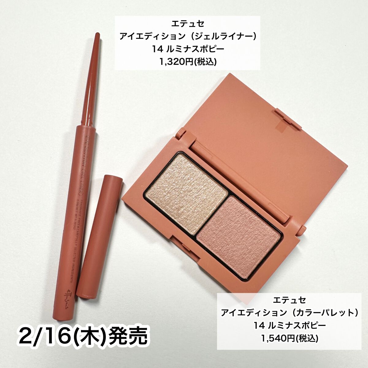 この春エテュセが提案するスタイルは『フラワリーレイヤード』 花々のような自然な色合いをレイヤードしながらナチュラルながらも華やかなメイクを楽しめるようなアイテムが沢山♪ 私が気にいったのはスムースな描き心地のジェルライナー♪ 優しいピンクカラーが粘膜っぽく演出してくれる🥹 カラーパレットと合わせて使うと春メイクが簡単に完成〜🙆♀️🌸