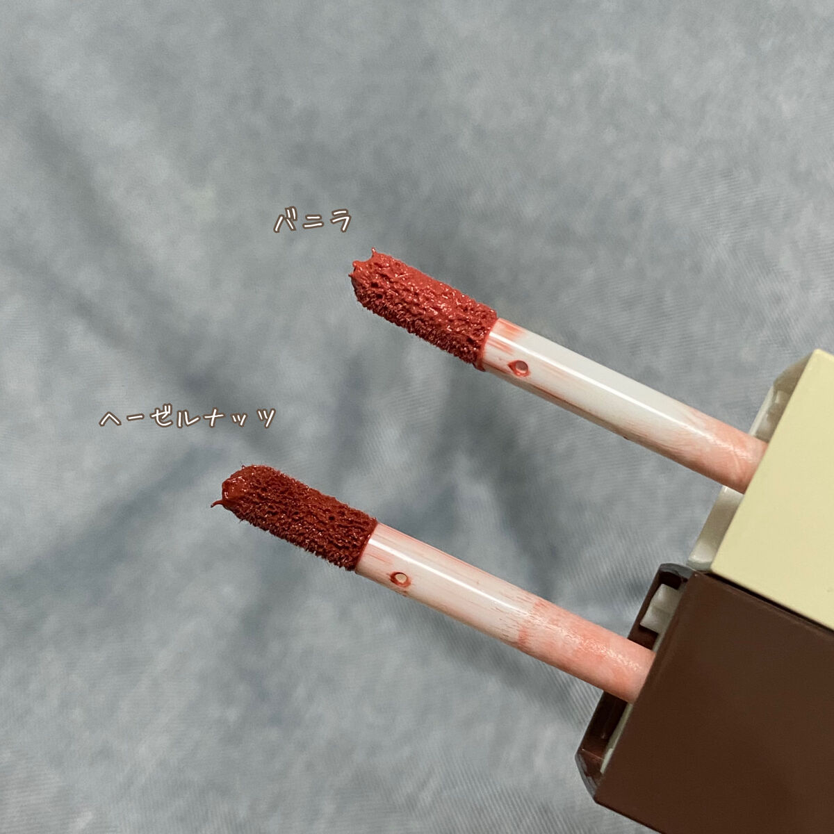 どちらもかわいいチョコレートカラーで 01は血色感のあるブラウン🍫 02はいちごみたいなローズ系🍓 となってます💫 ミニサイズで持ち運びにもいいし、とにかくかわいい色がコンビニで買えちゃうのはでかい🫶🏻 色持ちはめっちゃいい訳じゃないけど、潤いもあって使いやすいです🥰