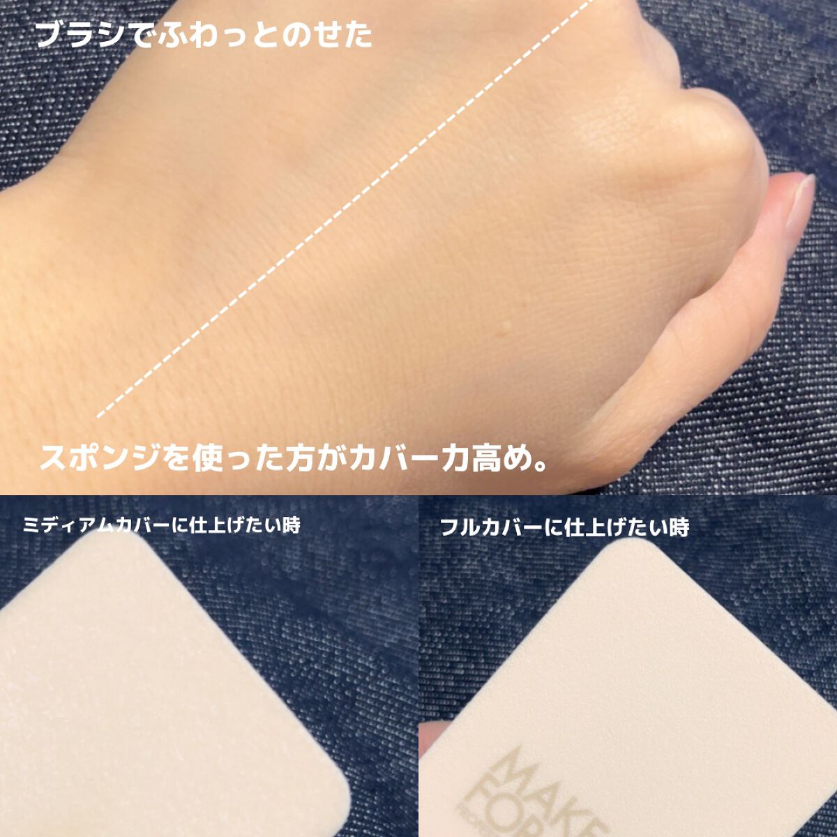 このパウダーファンデ、とにかくスゴい! パウダーファンデって言うと、パサつく・カバー力ないくせに厚塗り感ありありって思われがちだけど、これ全然そんなことない。 めっちゃつるん!とした仕上がり。時間が経ってもキレイ、っていうか時間が経ってからの方が皮脂と馴染んでキレイ。 付属のスポンジはロゴのある面がツルツルでハイカバー仕上げ、裏面はふわふわでナチュラル仕上げになる両面タイプ。