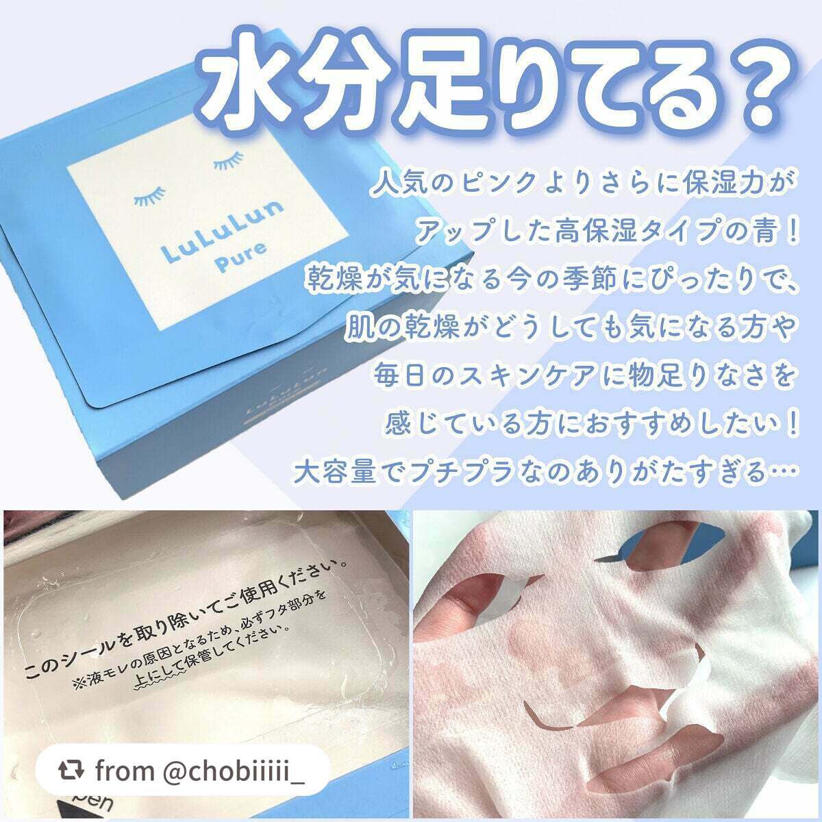 - 「ルルルン」シリーズが「ルルルンピュア」になってリニューアル。もっちり高保湿タイプのマスク。