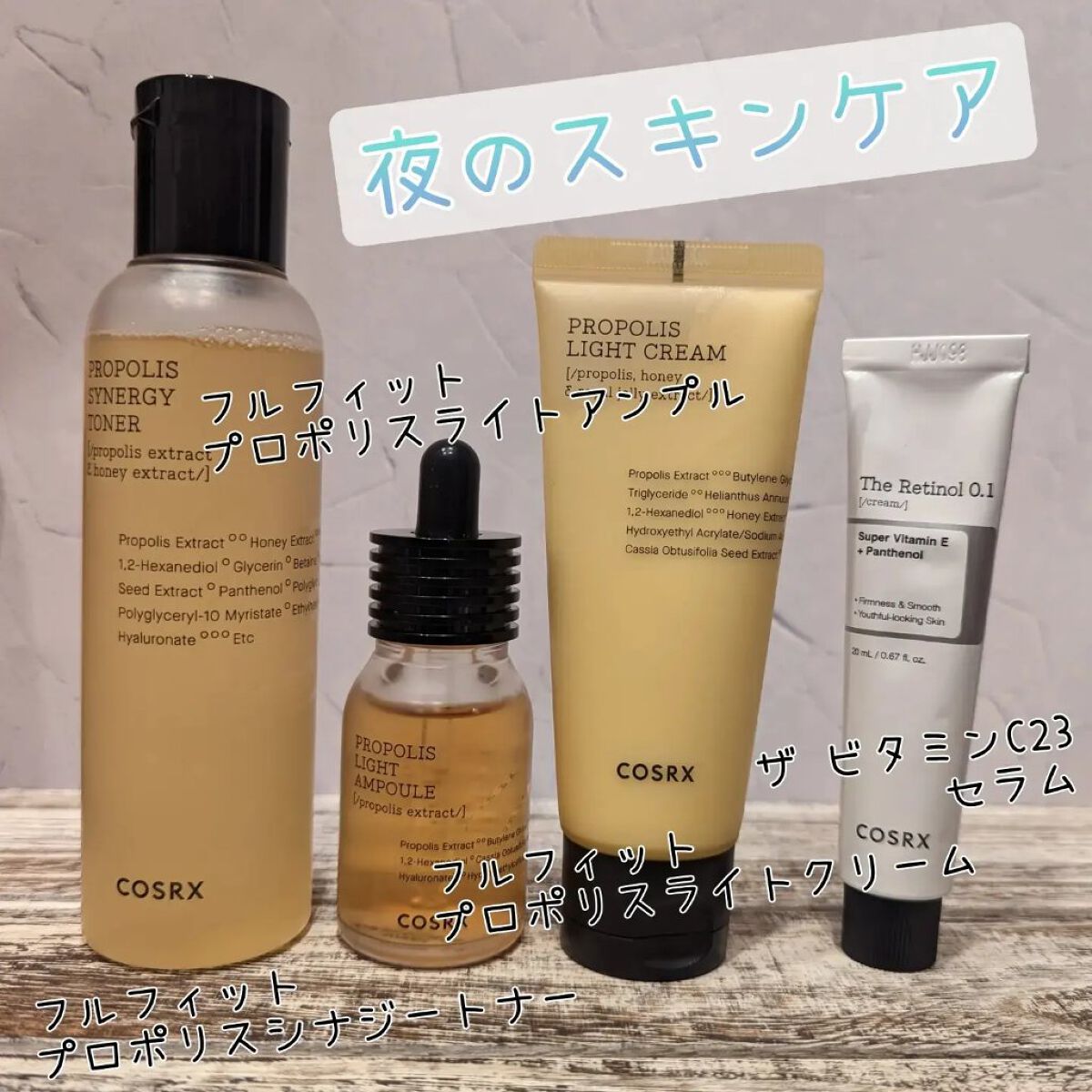 COSRX・フルフィットプロポリスシナジートナーシャバシャバ系とトロミ系の間の化粧水手でもコットンでも🙆♀️浸透率も良くて荒れててもヒリヒリしないのでよかった!けど、リピートするまででは無いかなとおもいました。リピートするならアンプルかエッ...