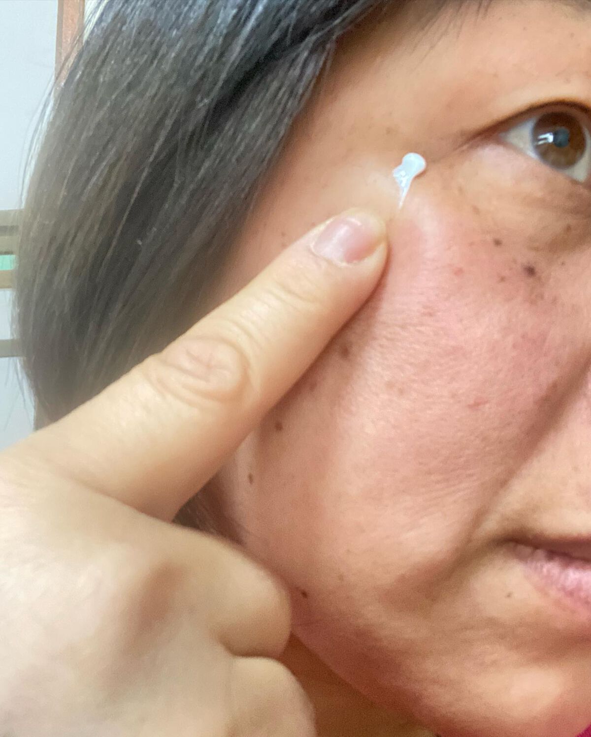肌にうるおいを与え、明るい肌印象へ。肌をなめらかにし、なじませた直後からツヤのあるお肌へ導いてくれるそう。 目元だけでなく顔全体にも使えるとのこと。 こちらはそれよりもこってりとした印象ですが、なめらかに塗れてベタつかず、アイクリームの独特のペタペタ感がなくて使いやすく感じました。