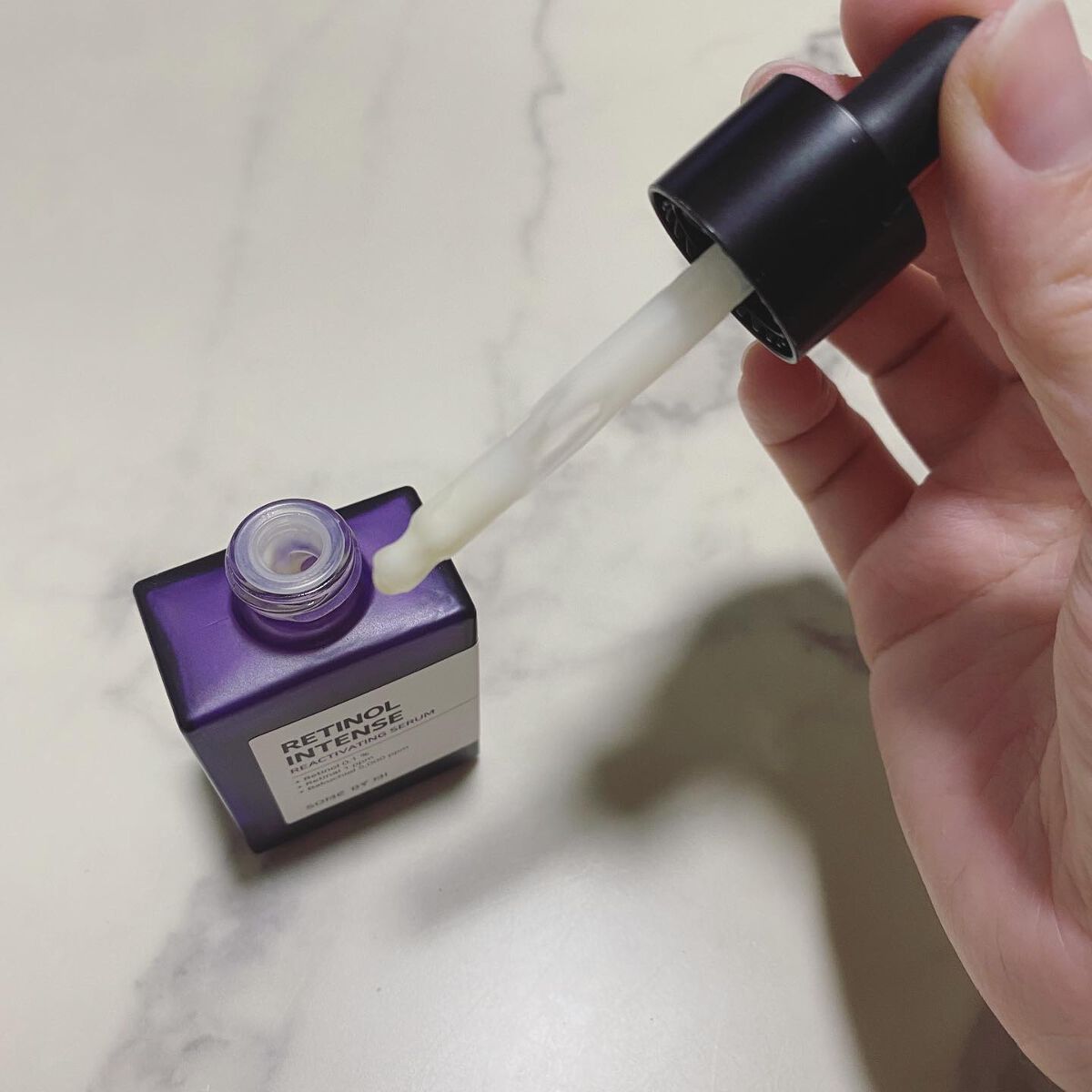 レチノールとレチナール配合のエイジングケアにぴったりな美容液。 クリームカラーで乳液のような緩めのテクスチャー 伸びよく肌馴染みも良いです。 ヴィーガン認証済みで、レチノールでのA反応が気になる方でも使いやすくなっています⚪︎