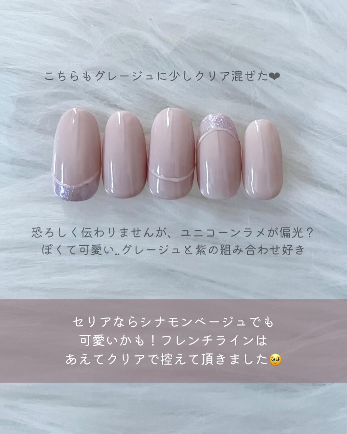 可愛すぎるよ!! ピンクオーロラはピンクすぎないから他色に被せることもできそうだし、もうもう😭語彙力🙏 セリアジェルのミルキーベージュ好きな方はきっと好きな色味🥺優しい。