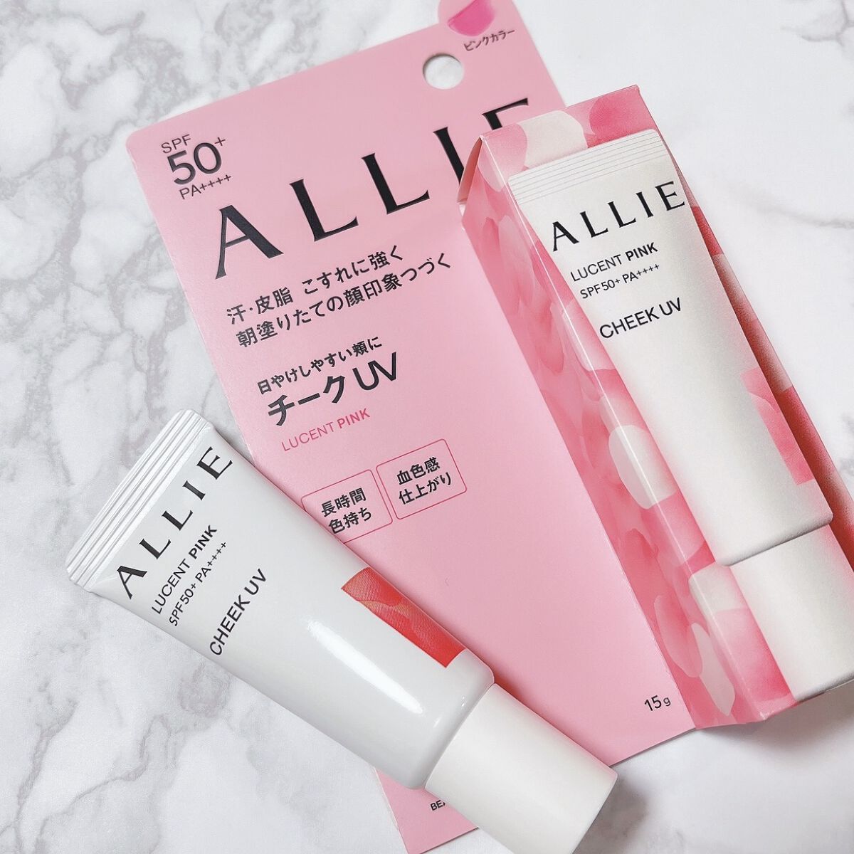 - ◆紫外線を浴びやすい、頬に使えるチークUV/鼻・頬に使える追いツヤUV ◆メイクの上から塗り直しとしても使える。 ◆汗・皮脂 マスクやタオルなどのこすれにも強く落ちにくい。 ◆「カラーUVヴェール技術」で、ベースメイクと混ざりにくく均一に密着。 SPF50+と感触の良さはそのままに素肌を活かした自然な色づきを両立! ◆8時間色持ち データ取得済み ※アリィー調べ。効果には個人差があります。 <基本情報> ・強力UV カット(SPF50+・PA++++) ・フリクションプルーフ:タオルやマスク等のこすれにも強く、落ちにくい ・スーパーウォータープルーフ:汗・水に抜群※²に強い機能 ※² アリィー商品内において LUCENT PINK(チーク 01) 自然に色づき血色感仕上がりの‟透け感ピンク” パッケージもピンクで、ポーチの中も華やぐメイクアイテムです WARM ORANGE(チーク 02) ヘルシーな血色感仕上げの‟じんわりオレンジ” じんわ~りと血色感を与えてくれるから、素肌を活かした自然な仕上がりに TRANSLUCENT(ラスター) ツヤ感を演出する‟シマーカラー” 鼻や頬にハイライトとして使うことで長時間ツヤが持続します