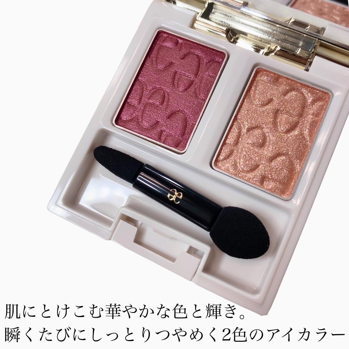 - 肌にとけこむ華やかな色と輝き。 瞬くたびにしっとりつやめく2色のアイカラー