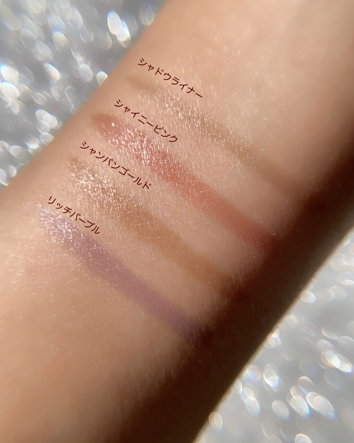 シャイニーピンクは繊細なラメが上品カワイイよ💓 悪目立ちしない肌なじみが良い色だよ🎵 涙袋メイクに丁度良いお色かと思うわ🤗 目の上にシャドウブラウンとシャイニーピンクを重ねて引いちゃってるよ☺️ 目立たない色なのに、奥行きがでるんだよね👍 私は奥二重で、目元がキツクなりやすいから、フワッとした優しい色で使いやすいわ💓