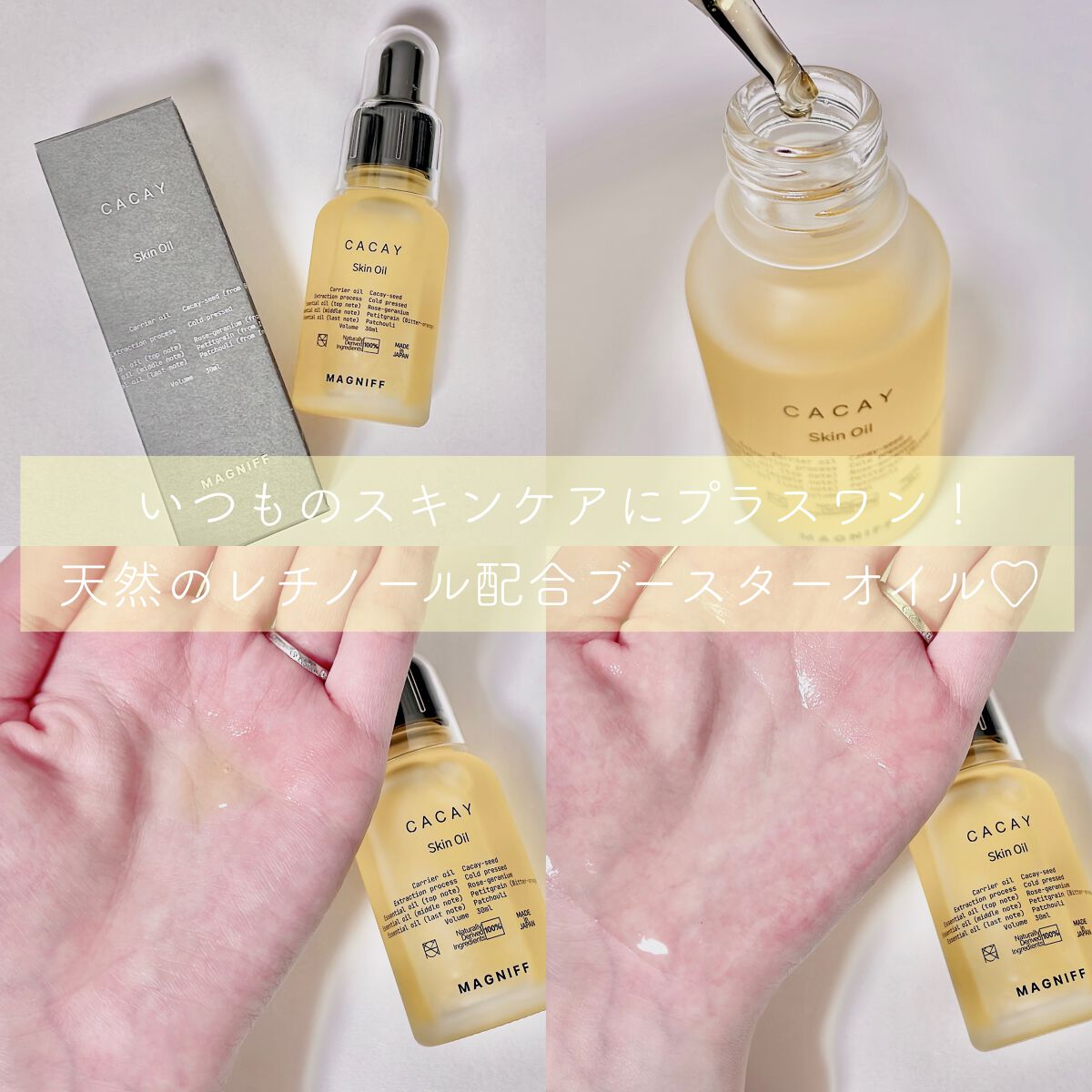 ..MAGNIFFスキンオイルカカイ南米のアマゾン周辺が原産の植物カカイ種子から非加熱・低温でじっくりと圧搾してつくられているカカイオイル天然のレチノールや良質な脂肪酸を多く含み、有用成分の豊富さから「アマゾンの秘宝」と呼ばれているそう𓍯洗顔...
