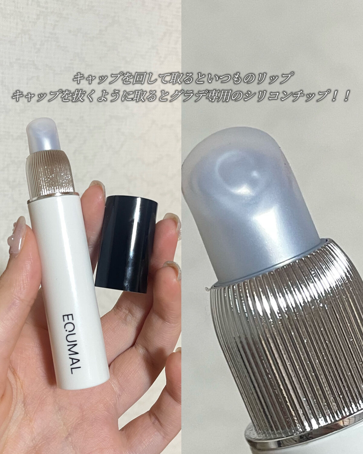 - 韓国のビューティー系インフルエンサー、LAMUQUE(ラミュク)さんが手掛けるブランド「EQUMAL(エクマル)」のティントリップ。 オイル膜が水分ティントを包み込み、みずみずしくツヤのある仕上がりをキープします。 時間が経過するほど透明感が増し、ツヤっとした質感が引き立ちます! ✓40%の水分量とローズリップオイルを配合 ✓ グラッシーグロウフィニッシュ:美しい発色&立体的&透明感溢れる仕上がり ✓ 革新的な使い心地:唯一無二の『シグネチャーリップスプレッダー』 →カラーを均一に密着させた後にグレーザーで唇の外側をぼかすと簡単にグラデーションリップ出来上がり! ✓ ベタつかずに時間が経つとともに浮かんでくるオイルの艶感!潤いとツヤを一日中キープ!