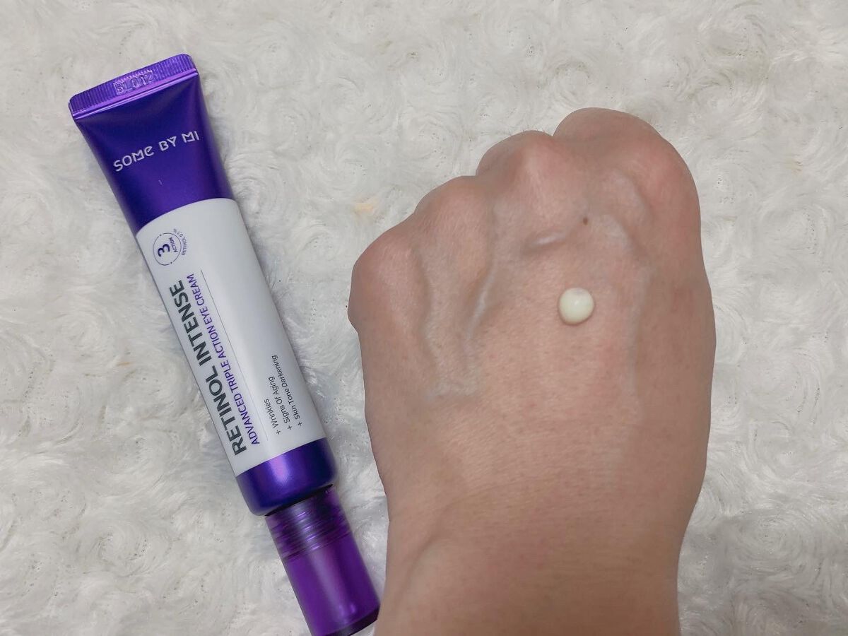 サムバイミーは、トラブル肌、敏感肌に注意を注いでいるスキンケアブランド☝️ そんなサムバイミーが作った、レチノール入りのアイクリームって👀⤴️⤴️ レチノール0.1%+グルタチオン配合で、レチノール入りなのに初心者でも使いやすい😆 クリーム色の、滑らかなクリーム状テクスチャー😌 チューブの先が細く、少量も出しやすいし目元ケアしやすい⤴️