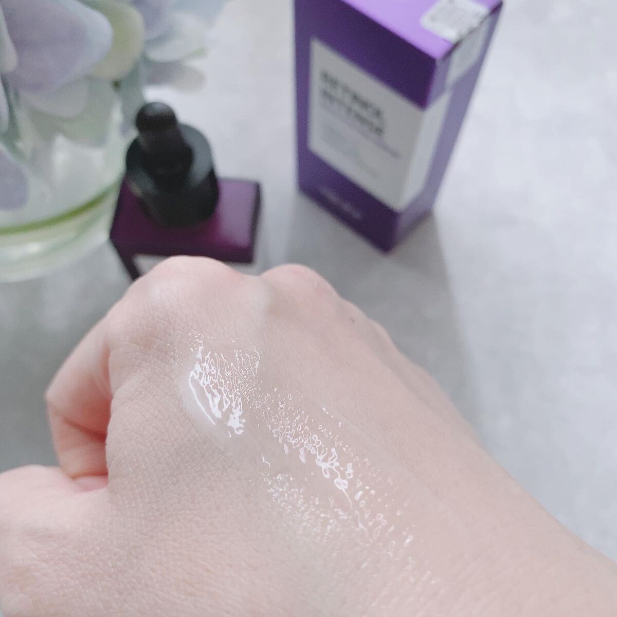 ブラックスネイルと低刺激のレチノールを配合した美容液です。肌に高い栄養を与え、肌のキメを整え、弾力やハリのケアを助けるだけでなく、気になる毛穴や小じわなどを改善し、肌のくすみを明るくし、ぶるんっとハリのある肌を作ってくれるそう! とろみのあるテクスチャーで伸びが良いです。低刺激のレチノールなので日常使いしやすいのが嬉しいポイントです。 レチノールを初めて使うという方にもオススメです。