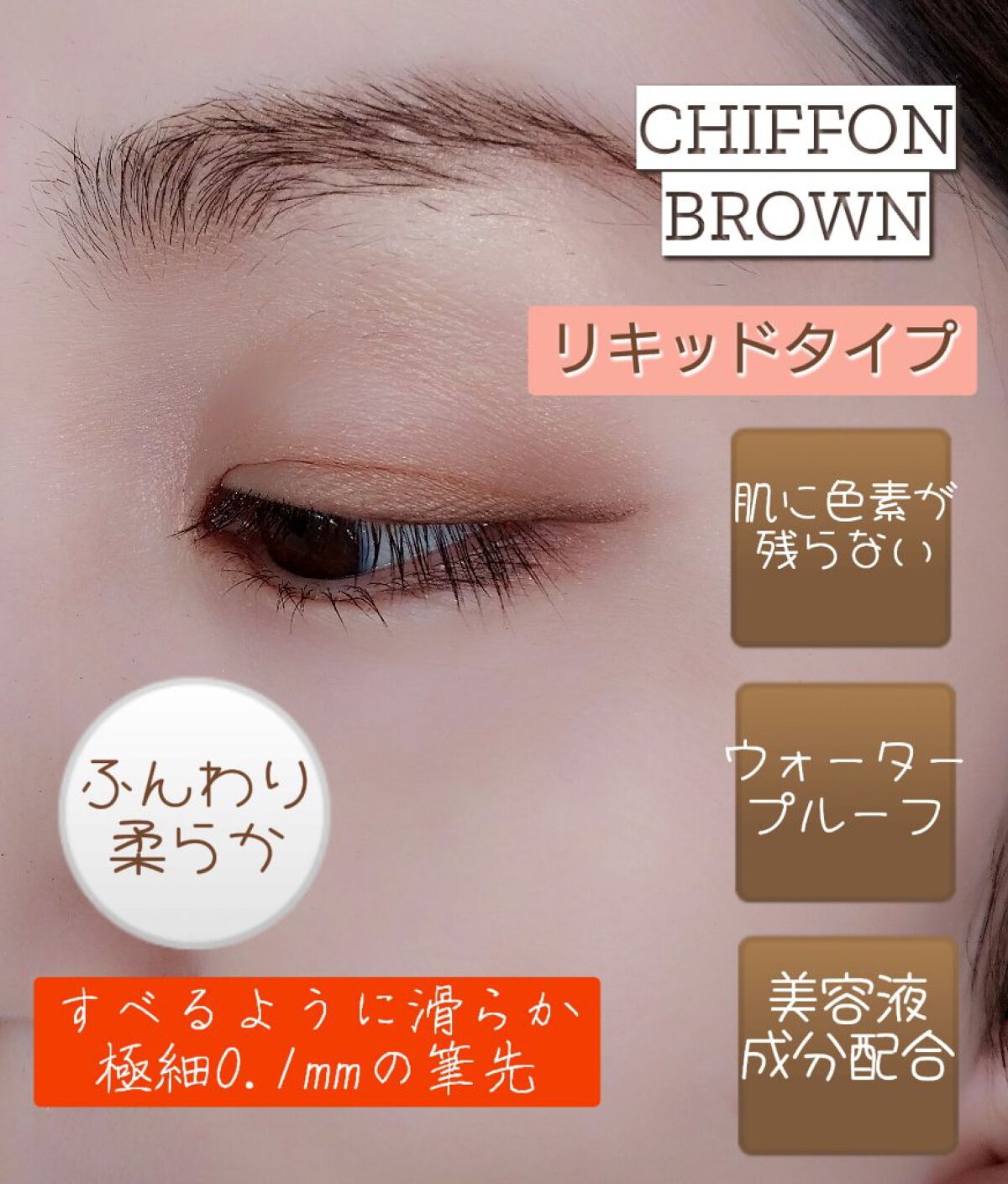 - 筆先までずっとなめらか、目尻で感動するリキッドアイライナー。 必要な量が肌にのる新設計で、まぶたの上をすべるような、滑らかな描き心地。しなやかでコシのある筆が、筆圧のコントロールを容易にし、太いラインも細いラインも思い通りに仕上げます。水、汗、涙に強いウォータープルーフタイプなのに、通常洗顔で簡単オフ。肌に色素が残らない顔料を使用。5種類の美容液成分を従来品の200%配合し、メイクしながら目元ケアまで。 ●ブラウンブラック ※2020年9月12日 バラエティショップ先行発売 ●漆黒ブラック ※2020年12月頃発売予定 ●ナチュラルブラウン ※2020年12月頃発売予定 ●シフォンブラウン 「毎日メイクに透明感と抜け感」 ブラウンでも、グレーでも、ベージュでもないニュアンスカラー。 自然な印影で素の目元を際立て、頑張りすぎない、ふんわりとした目元に。 ●アプリコットブラウン 「じゅわっと血色感。 肌に馴染むおしゃれカラー」 温かみのあるアプリコットがじゅわっと滲む血色感を目元に演出。 肌馴染みが良いので、カラーライナーに抵抗がある方もブラウンの延長線上で楽しめる、使いやすい色味です。 ”ちょっとオシャレ”な空気感を演出するカラー。 ●ピンクショコラ アイライナー 「ピンクが溶け込む濃厚ブラウン」 肌馴染みが良く、目元にじんわり血色感をプラス。 さりげなく女性らしさが加速するようなカラー。 ●ピスタチオラテ (2022年7月29日(金)発売) 「“目尻”に抜け感アクセント」 肌に馴染むのに映える絶妙なグリーン。 トレンドカラーに“くすみ”と“抜け感”をプラスしたまろやかな発色。 ●マスタードブラウン 「“イエロー”が揺れる、大人の洒落色」 (2022年7月29日(金)発売) まるで太陽のような暖かさを感じる新しいブラウン。 ほんのり感じるイエローでメイクが一気に垢抜ける稀有な色。 ●シフォンピンク(2023年2月10日発売) 「ふんわり柔らか"まろみピンク"」 甘くなりすぎない青みニュアンスで目元の透明感UP。 目元を引き締め、ピンクメイクにありがちな腫れぼったさを解消。 ●ミルクカプチーノ(2023年4月21日発売) まろやかな深みの“優しい締め色” どんなメイクにも合わせやすいカラー。 自然な陰影でさりげなく目幅を拡張します。 ●グレーカシミア(2023年10月1日発売) ブラウンがほんのり溶け込んだ、暖色グレー まろやかな発色で、パーソナルカラーを問わず肌に馴染む 目元の陰影になりすまし、抜け感と目力を欲張りに叶える ●ダークフィグ(2024年6月1日発売) するする”なめらか。描きやすいのに、落ちにくい。 クッキリ可愛いほの甘ダークブラウン ●ピーチモカ(2024年8月1日発売) ふわっと自然に盛れる“桃色ブラウン” ほんのり血色感で目元にうるみ感を演出 ●スターダストブラウン(2024年12月11日発売) キラッと繊細に輝く''星屑ブラウン'' 透け感のあるダークブラウンの色味とラメの輝きが、目元に艶のある立体感を演出 ●チャコールモカ(2025年4月10日発売) 目元を締める''深みグレージュ'' 黄みや赤みに偏りすぎない絶妙な色設計で、自然に目元を強調
