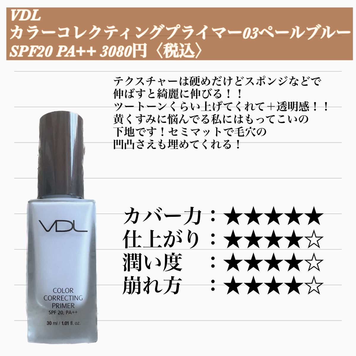 VDL トーンステインカラーコレクティングプライマー | 3,080円 |