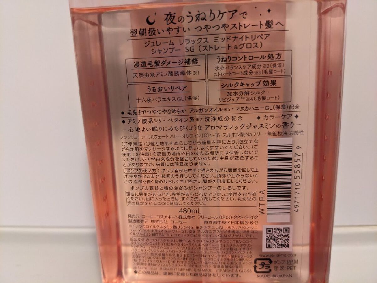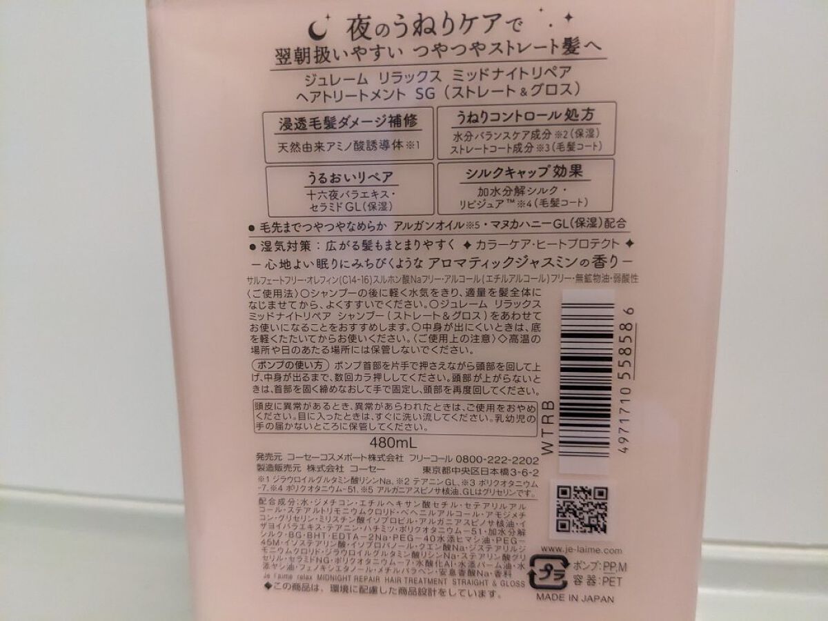 商品詳細情報Je l'aime リラックス ミッドナイトリペア シャンプー/ヘアトリートメント (ストレート&グロス)