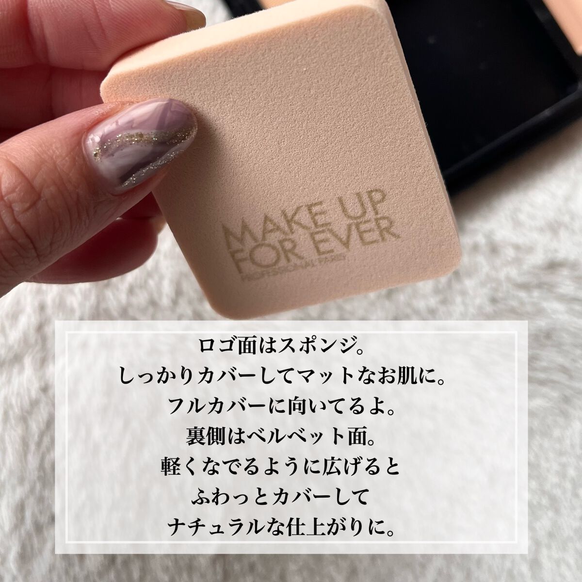 このパウダーファンデ、とにかくスゴい! パウダーファンデって言うと、パサつく・カバー力ないくせに厚塗り感ありありって思われがちだけど、これ全然そんなことない。 めっちゃつるん!とした仕上がり。時間が経ってもキレイ、っていうか時間が経ってからの方が皮脂と馴染んでキレイ。 付属のスポンジはロゴのある面がツルツルでハイカバー仕上げ、裏面はふわふわでナチュラル仕上げになる両面タイプ。