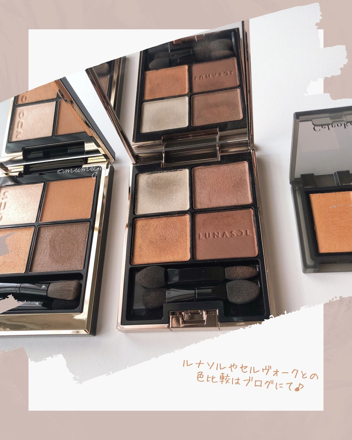 ゴールドとピンクを中心とした多色パール。 それらが交わってできる輝きと濡れ感が高貴な感じがして、使うたびに嬉しくなります。 深みと透明感が両立していて、そのニュアンスや空気感を存分に楽しむような、そんなパレットです。 4色を重ねていくにつれてアンニュイな雰囲気で満たされていきます。