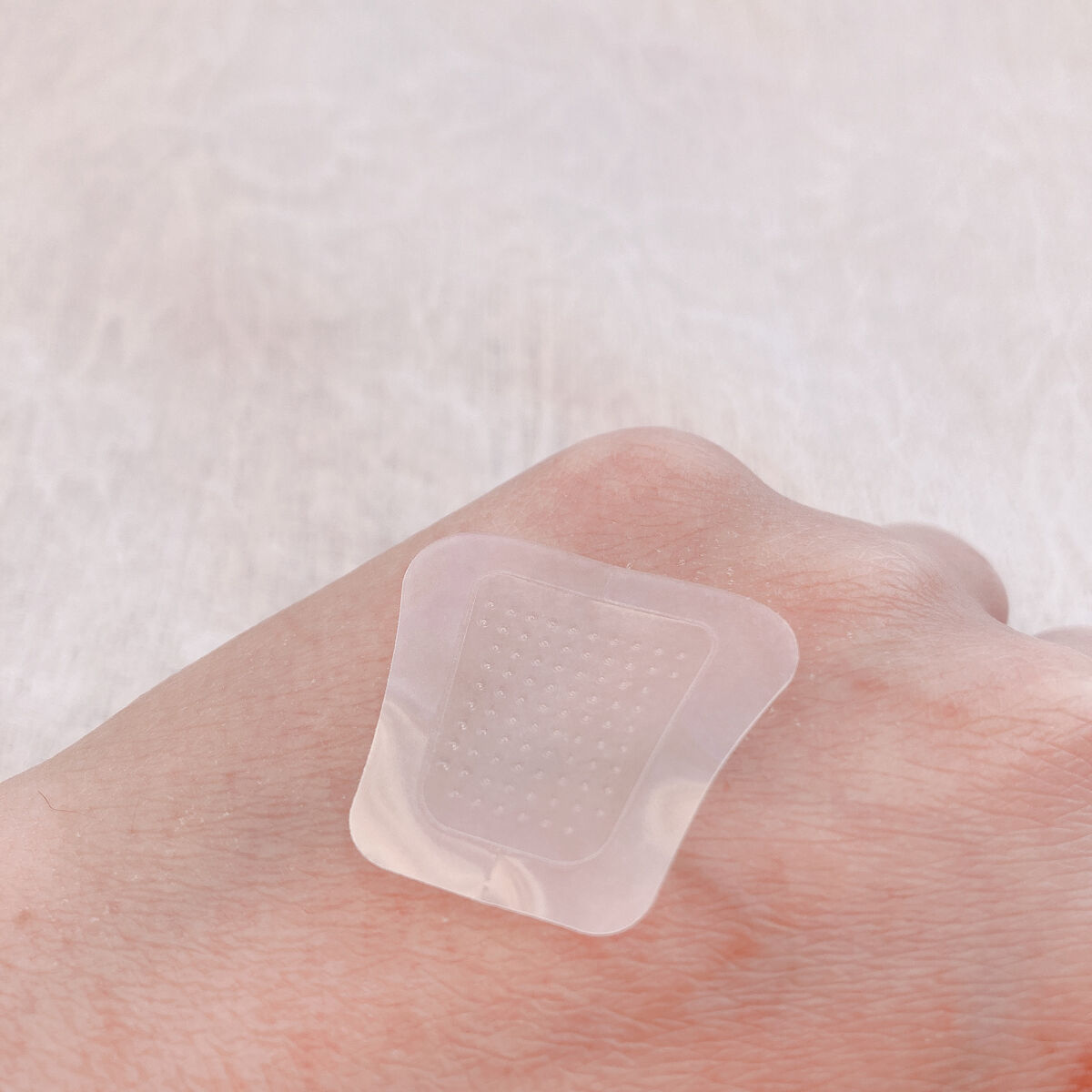- “刺す化粧品シリーズ”の、眉間の年齢サインにアプローチをする眉間専用商品です。 刺す化粧品の一番の特徴は、針の形状。美容成分そのものを針状に固め、肌に直接突き刺すことで、ダイレクトに角質層まで美容成分を届けることができる画期的な美容法です。 針の成分には、しかめ面や険しい表情などで凝り固まった眉間の折れグセにアプローチする「ほぐし成分*¹」と、肌の乾燥やハリ不足を対策する「ヒアルロン酸*²」など、眉間の深い悩みにアプローチをする美容成分をたっぷりと配合。 パッチは眉間部分に合わせた形状で、粘着部分はハイドロコロイド材質を使用しているため、密着性は高いですが肌への刺激が起きにくく、就寝中もご使用いただけます。 週に2回貼って寝て、手強い眉間の年齢サインをケアします。 *¹アセチルヘキサペプチド-3、ペンタペプチド-18 (肌を柔らげる成分) *²ハリやうるおいを与える成分