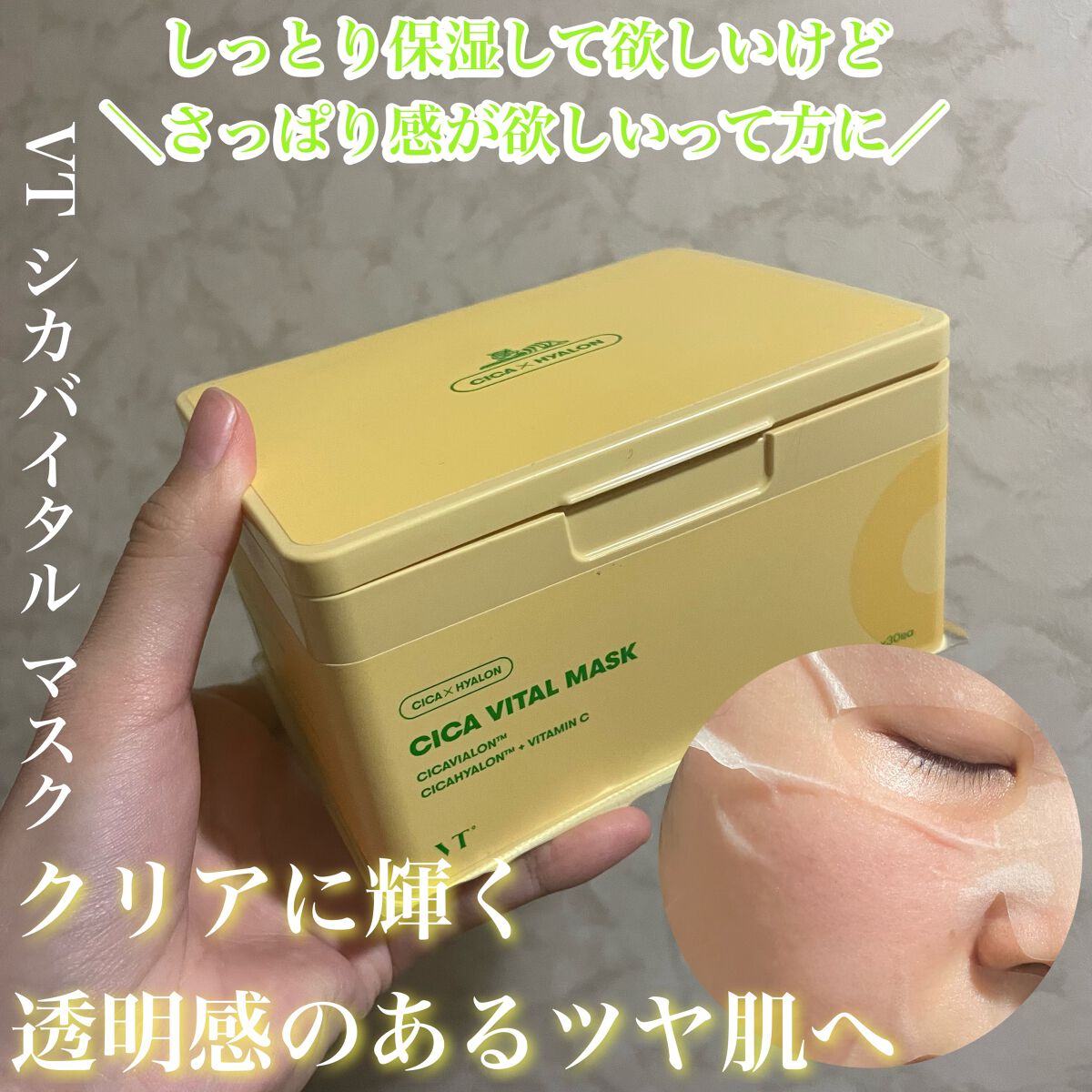 ⋆⋆💛VTシカバイタルマスク30枚入り確かAmazonで購入。こういう薄くてさっぱり系のマスク朝にするの好き✨️シカマスクは大丈夫なのにビタミンCが入ってるからなのか少しヒリピリした、もう慣れたけどリードル入ってたけど痛いんかな?💦ビビって怖...