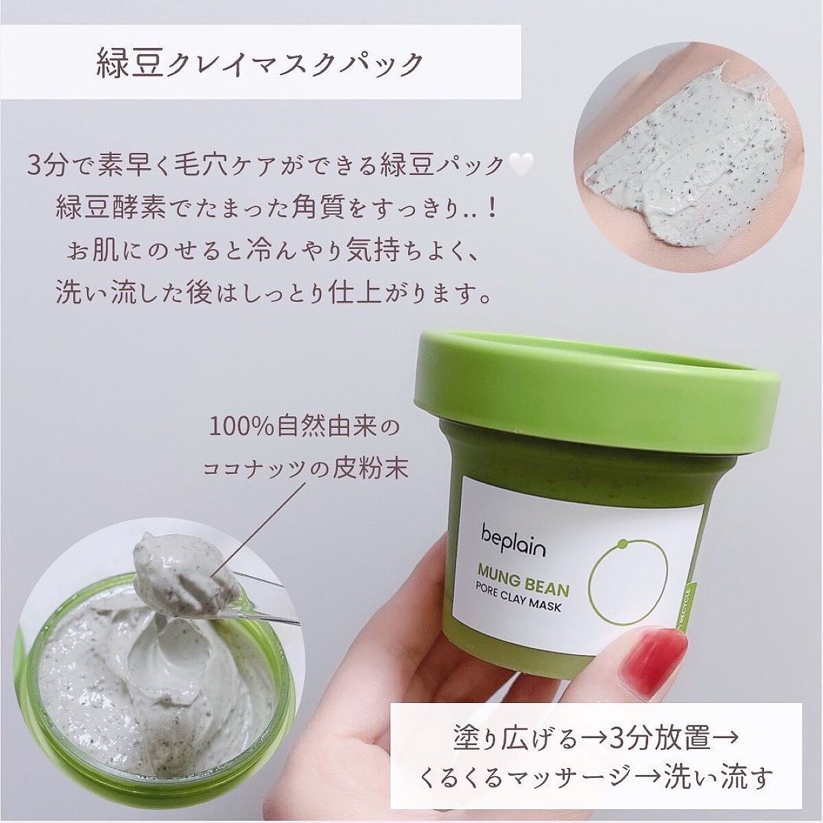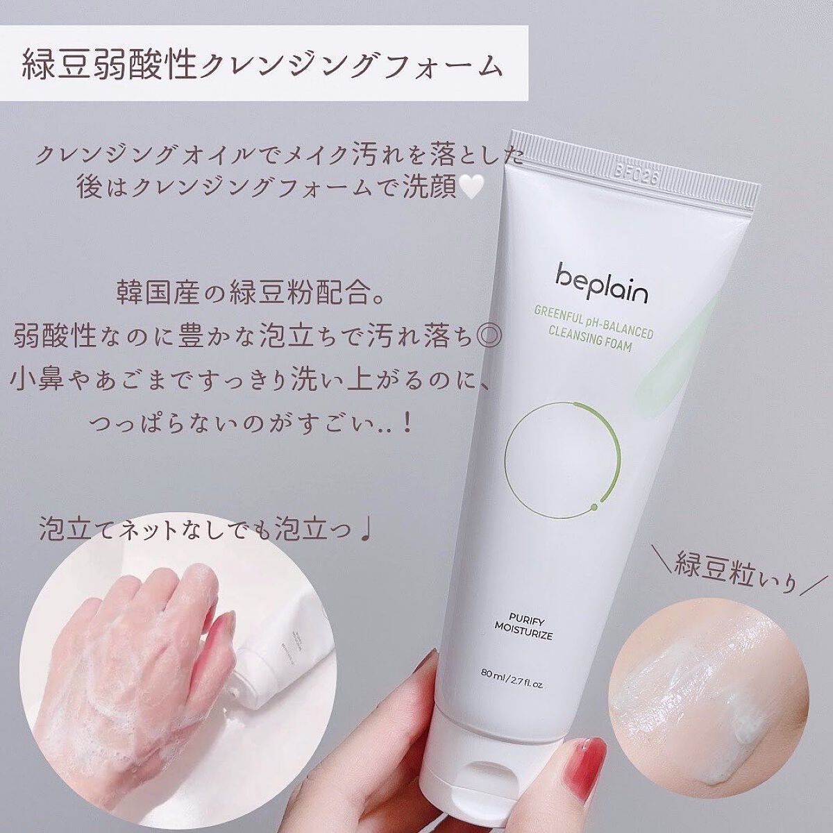 大分前のメガ割購入品です🤗✨beplain緑豆クレンジングオイル緑豆毛穴クレイパック緑豆弱酸性洗顔フォーム緑豆ミルクピーリングジェル緑豆バランシングトナー サンプルサイズ最近ようやく開封して使い始めました😊毛穴の汚れがスッキリする感じで、お肌...