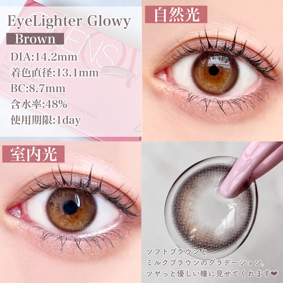 瞳に馴染むブラウン系水光カラコン比較♡【裸眼⇨こげ茶〜黒目の暗めな瞳】#pan太カラコンレポ ⇦レポまとめてます!カラコン選びの参考になれば嬉しいです🌷#OLENSの中でも特に人気な水光カラコンのシリーズを3種つけ比べてみました!◆GLOWY...