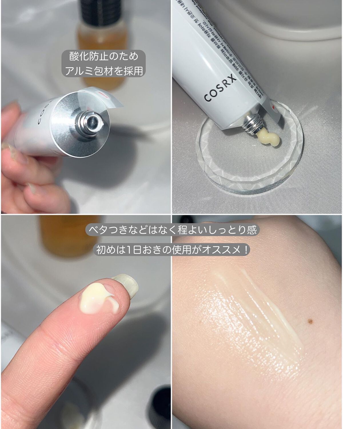 プロポリスエキス83%と天然由来の保湿成分が含まれていて、ツヤのある光沢の肌に整えてくれるアンプルです🐝 保湿力があってツヤ肌に仕上げてくれるので、特に乾燥肌の方や冬にオススメのアンプルだなと思いました❄️ Qoo10や楽天でランキング上位のレチノールクリームです✨ シワケアや弾力ケアをしてくれます😊