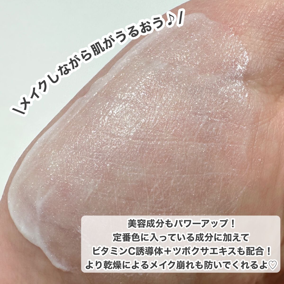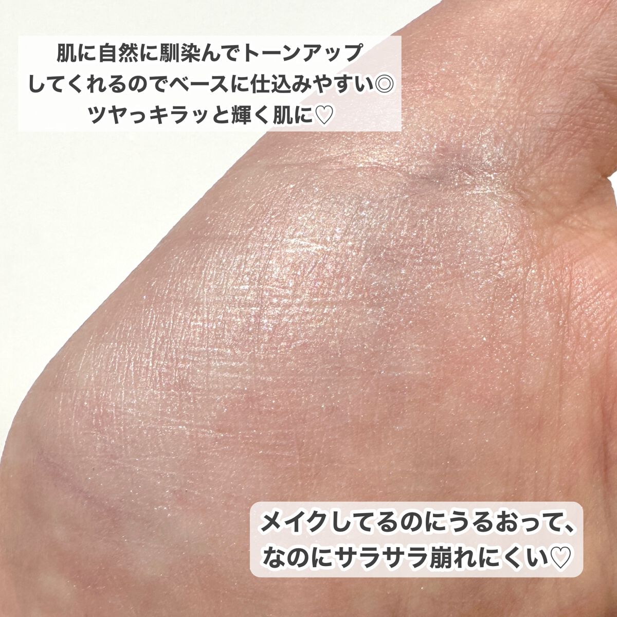 プライマーシリーズはひとつは持ってたいアイテムのひとつかと私の中で思ってます! このプライマーはラメが入ってるので、ツヤ感出る感じです。 私は、毛穴の気になる所や、油脂が出やすい小鼻とかに塗ってます。