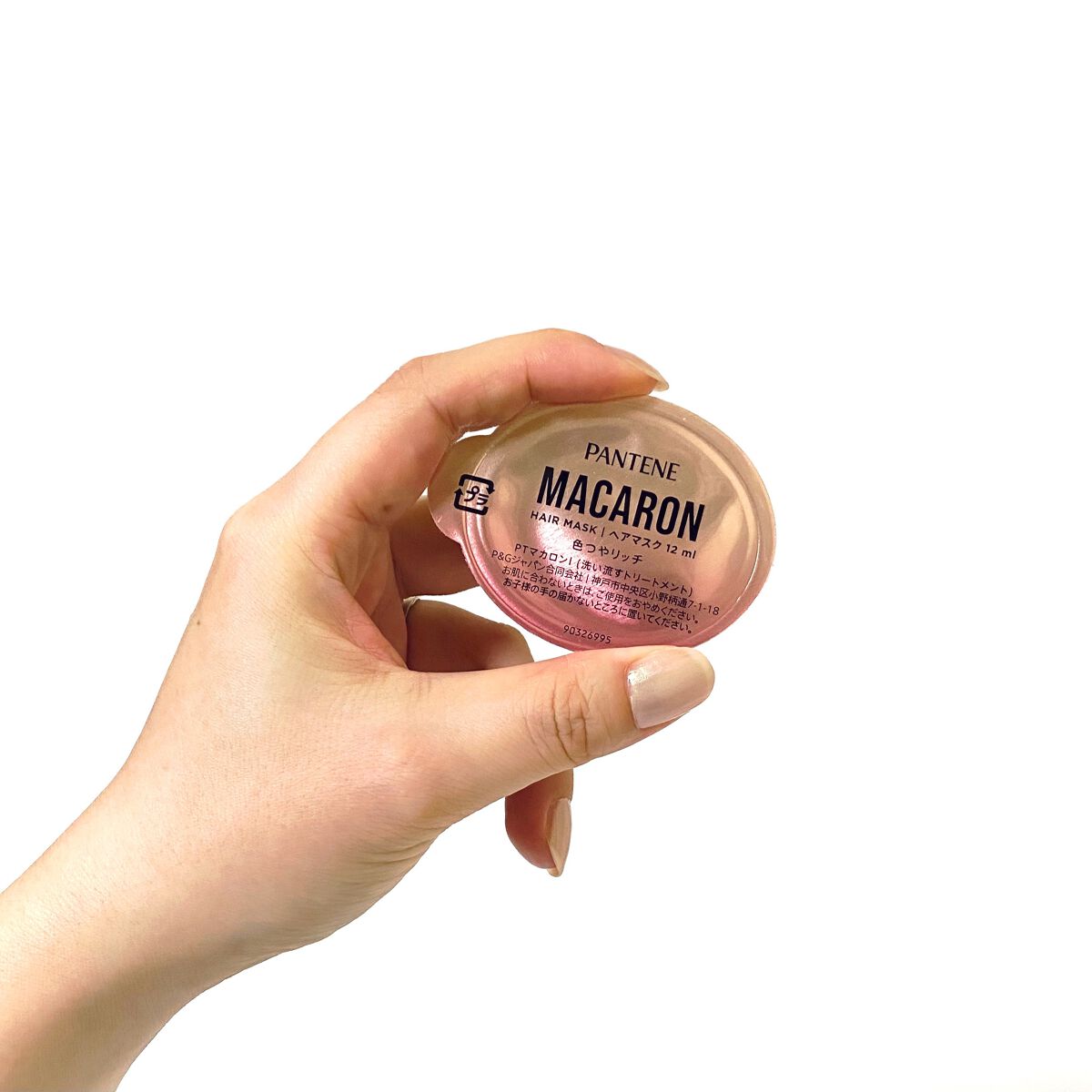 - 「パンテーン マカロン ヘアマスク」は、1粒に1回分の洗い流すトリートメントがたっぷり詰まった、使い切りタイプのヘアマスクです。 マカロンのようなカプセル型のユニークなパッケージの可愛さのみならず、個包装の使い切りタイプによる3つの特長で、たった1粒で、ずっと続く、うるおいつめく髪/色つや髪へ導きます。 1.1粒にたっぷりの洗い流すトリートメントをギュッと濃縮。すぐに感じる、もっとまとまる髪へ! 「パンテーン マカロン ヘアマスク」は、1粒にたっぷり12mLの洗い流すトリートメントが入っています。様々な髪の長さ、量の方でも髪の内側までしっかりと塗布することができ、効果を発揮します。 たっぷりの量を使用することで、髪のまとまり感がアップ。 2.いつでも開けたて、フレッシュな洗い流すトリートメント カプセル型のパッケージに入った個包装の1回使い切りなので、いつでも開けたてのフレッシュさ。 毎回、使う直前に手のひらで“メルティうるおいパール*”を混ぜ合わせて、1粒で、長時間続くうるおいつやめく髪へ。(うるつやリッチのみ) *黄色いカプセルのこと 3.個包装だから持ち運びOK。いつでもどこでも、うるつや髪・色つや髪に 日々のケアはもちろん、1粒ずつ持ち運ぶことが出来るので、ジムやサウナ、お泊り会、旅行・出張など、様々なシーンで使うことが出来ます。いつでも・どこでもうるつや髪/色つや髪に。