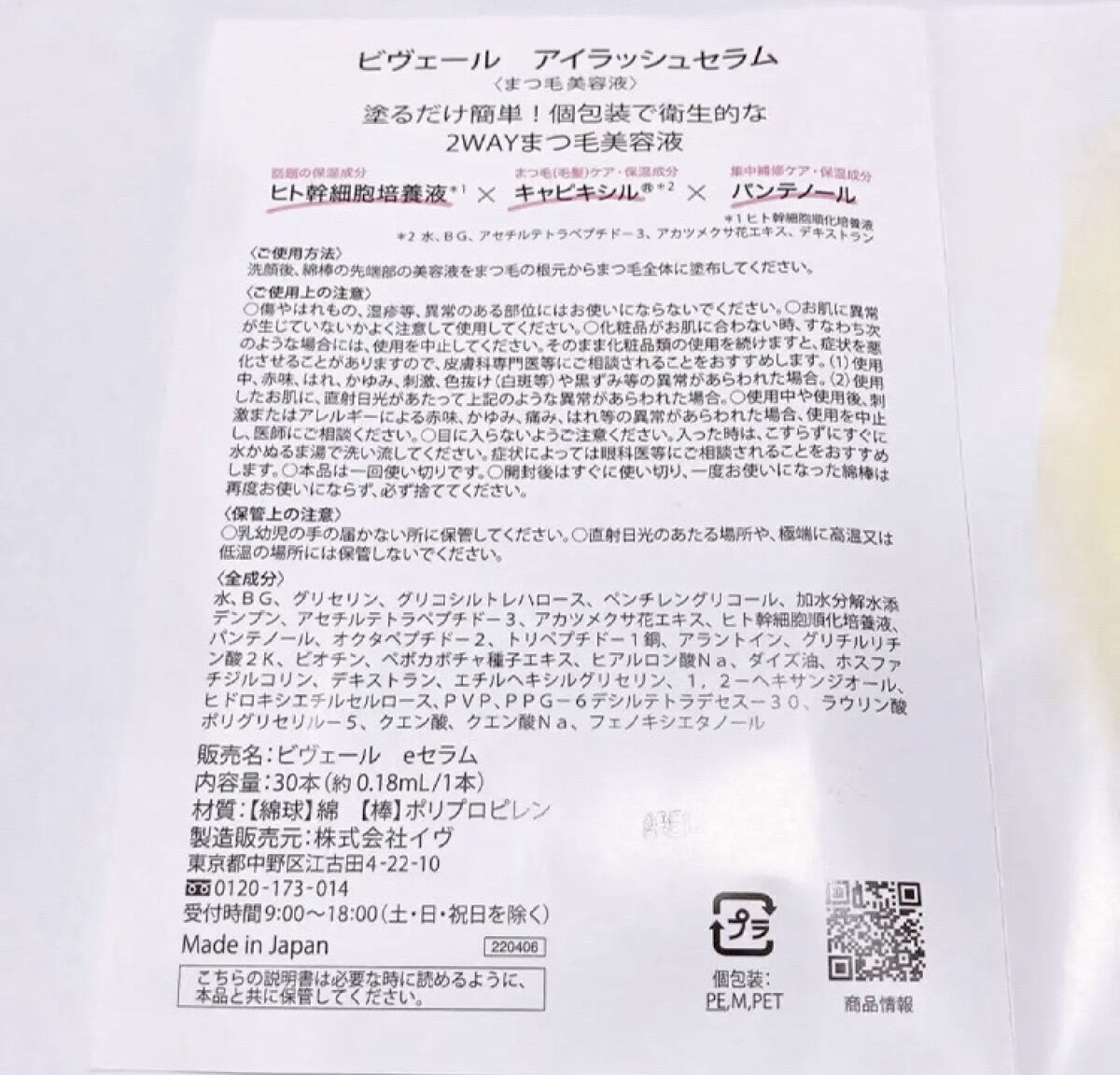 - 個包装で衛生的に使用できる“使い切り”タイプのまつ毛美容液 こだわりの成分(ヒト幹細胞培養液※1・キャピキシル※2・パンテノール※3)配合でまつ毛の集中補修にアプローチ。ハリ・コシのあるしなやかなまつ毛へ! ※1 ヒト幹細胞順化培養液(保湿成分) ※2 水、BG、アセチルテトラペプチド-3、アカツメクサ花エキス、デキストラン(保湿成分) ※3 保湿成分