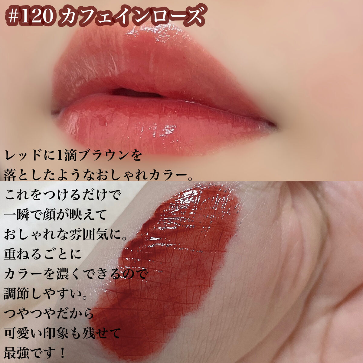 秋冬に使いたくなる、濃いめなカラー。しっかりティント力もありますが、私は乾燥などは感じなかったです。 ブラウンみのある、ダークなローズ系。どんなアイメイクとも合わせやすいと思いました。