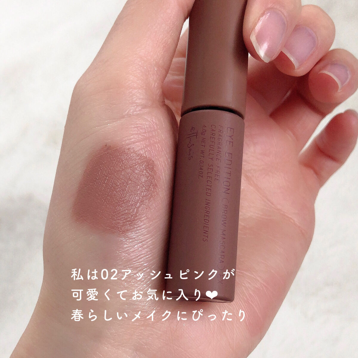 - 絶妙ニュアンスカラー 固めずふんわりなじむ 眉マスカラ ●眉尻などの細かいところまで塗りやすいスリムなツリー型ブラシ ●色づくのに固まらず、ふわりと仕上がる ●汗、皮脂に強く、美しい仕上がりが長時間持続 ●お湯で落とせる ●美容液成分配合/毛髪トリートメント(アミノ酸)、毛髪保湿成分(ヒアルロン酸)配合 <使い方> ●はじめに、眉毛の流れと逆方向に、次に、眉毛の流れに沿って根もとから毛先方向にとかすようにして塗布します。 ●ペンシルタイプやパウダータイプのアイブローと併用する場合は、最後に本品をご使用ください。 ●ブラシの液のつきが多い場合は、容器の口もとで液を調整してからお使い下さい。 ●単品でご使用の場合は、お湯で落とせます。 ●ご使用後は容器の口もとをきれいに拭き、必ずキャップをきちんと閉めてください。容器の口もとに液がついたままキャップを閉めると、キャップが閉まらなくなったり、まれに中栓が外れる場合があります。 ●水や化粧水で薄めると、変質することがありますので、絶対に薄めないでください。 ●日のあたるところや高温のところにおかないでください。 ●衣類などにつくと落ちませんので、ご注意ください。