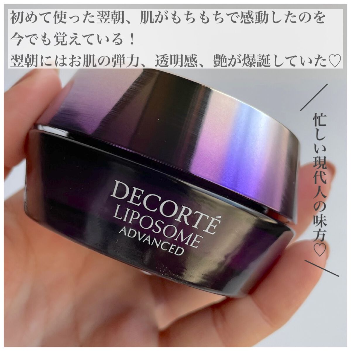 - 睡眠不足でも、3時間多く眠ったような肌へ。 美肌へのサイエンスを結集したカプセル、リポソーム。 その未知なる力を一途に研究し続けるコスメデコルテが、 新たな領域に到達しました。 睡眠中の美を高めるために開発された、1兆個※1のナイトカプセルが、肌をかけめぐりながら美を放ち肌の可能性を引き出す、まさしく、進化系ナイトクリーム。 どうしても短かくなりがちな睡眠時間も効果的に活用して、速攻美容できる、夜のエイジングケア※2です。 翌朝目覚める、ハリ・ツヤ・弾力。 そして、一日中いきいきとした輝きが続く。 夜を味方につけて、自信あふれる肌を手に入れてください。 ※1 1回の使用量1gとして算出(概算値) ※2 年齢に応じたお手入れのこと