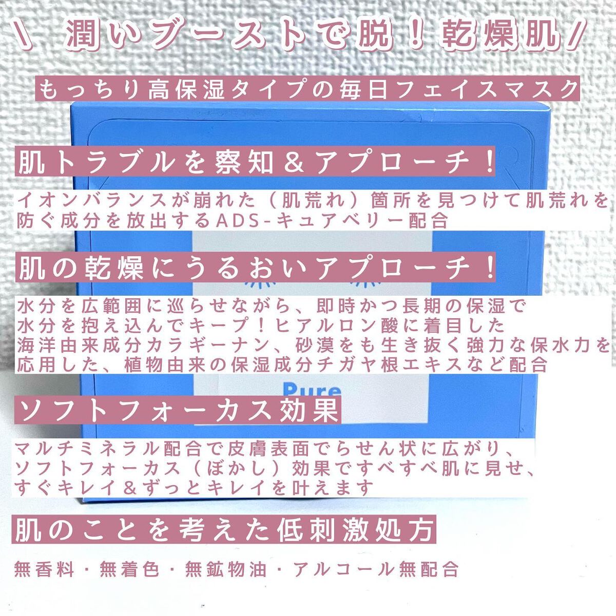 - 「ルルルン」シリーズが「ルルルンピュア」になってリニューアル。もっちり高保湿タイプのマスク。