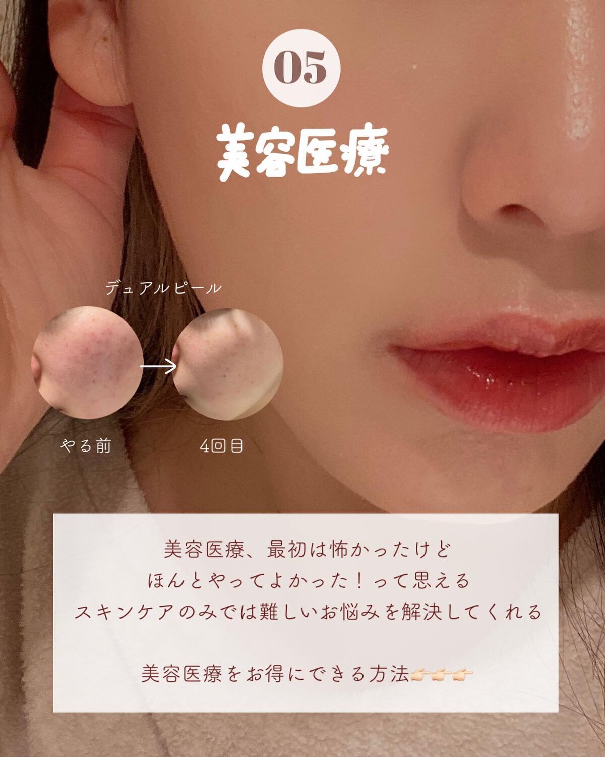 15年以上ニキビと共に歩んできた私ですが、ここ最近は生理前に1.2つできてすぐ治るほど改善されました🥺 社会人になり、ストレスも増え肌荒れが悪化し、クリニックや皮膚科に通いましたが、一時的に良くなってもまた繰り返す🥲 絶対絶対綺麗になれます。ぜひ一緒に美肌目指していきましょう🥹‼️