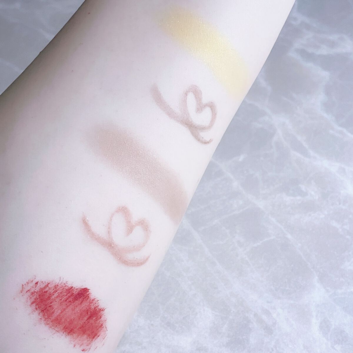 使用したのはhinacosmetics マルチアンダーアイパレットの02若紫❤︎ Aの涙袋用コンシーラーができる子でスルスル伸びてヨレない上にこの1色だけで立体感出る◎ 他にも涙袋を立体的に見せる影カラーやラメ&ハイライターまで揃うし色んな涙袋メイクができるよ🎨 02若紫は大人っぽい深みのあるピンクメイクが好きな人やブルベさんにおすすめ🫶 束感まつ毛は一緒に使ったまつエク用美容液で作ってるよ✨️ 粘性があるから程よくまつ毛に束感ができて目がパッチリ見えるからお気に入り🩵