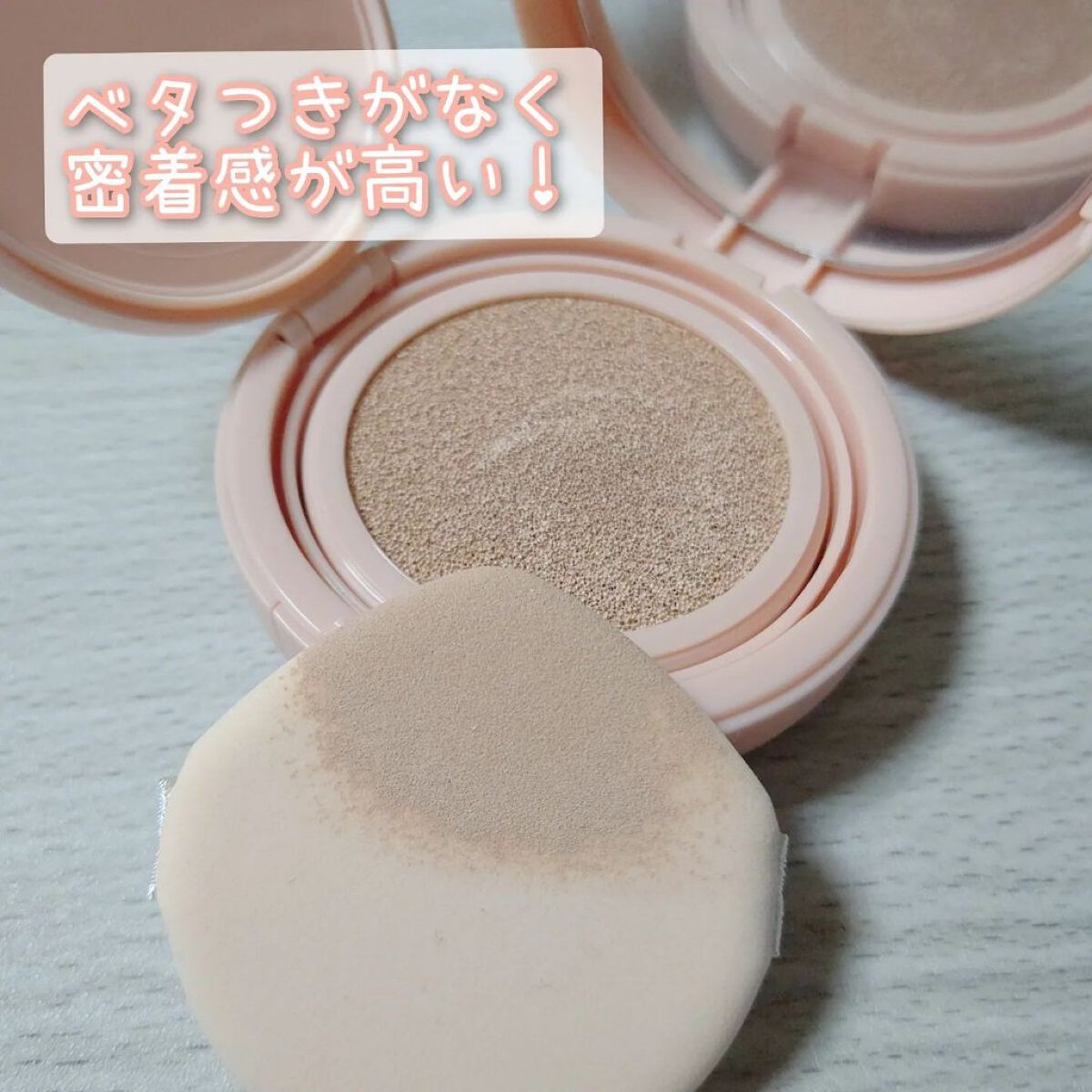 1️⃣肌にピタッと密着する、テクスチャー✨ 2️⃣強力なカバー力が、長時間続く✨ 3️⃣美容液を塗ったように保湿✨ 水分たっぷりの潤い肌❗️ 4️⃣自分に合わせてカラー選択✨ ライトベージュ、ナチュラルベージュ❗️ 5️⃣紫外線カット✨ SPF50+、PA++++❗️ クッションも薄すぎす、厚すぎす、ちょうどよい感じで、触り心地も良い感じ★ 肌に伸ばしてみると…カバー力も高くて、ある程度の毛穴は隠れてくれました! 大きめはコンシーラーをプラス!ベタつきがなく、さらっとした仕上がりなのに、しっかりとツヤがある肌になりました♪ 厚塗り感は一切なく、自然な感じで、夕方には若干崩れてきますが、崩れ方がキレイで、パウダーを叩くだけで良さそうです★ 紫外線もカットでき、簡単にナチュラル肌になるので、お気に入りコスメになりました! レフィルがあったら、良いなと思いました(^^)