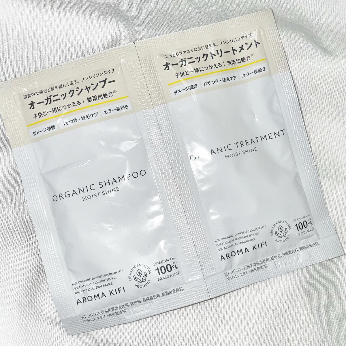 AROMAKIFIオーガニックシャンプー/トリートメント<モイストシャイン>サンプル❤️シャンプー香り いい香りです(o^^o)ハーブ🌿 ジンジャーかな?独特な香りです 爽やか泡立ちよかったですテクスチャーは液状です❤️トリートメント香り ハ...