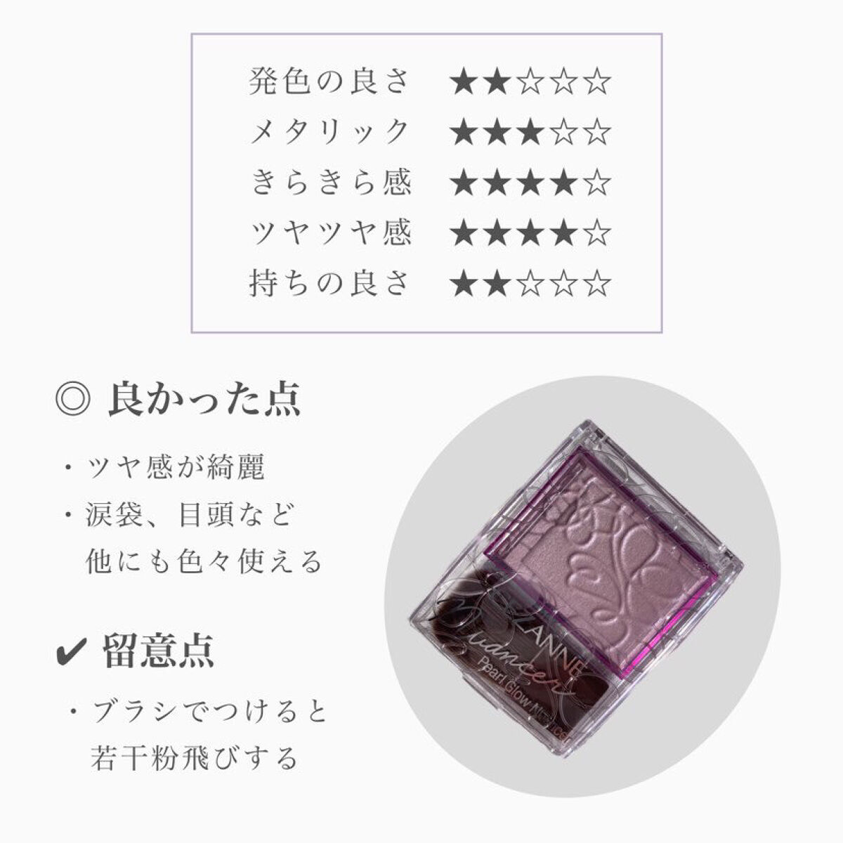 | ハイライト・シェーディングランキング第13位 | 発色、きらめきともに派手すぎなくてでもしっかり輝いて綺麗! | 詳細を見る | |