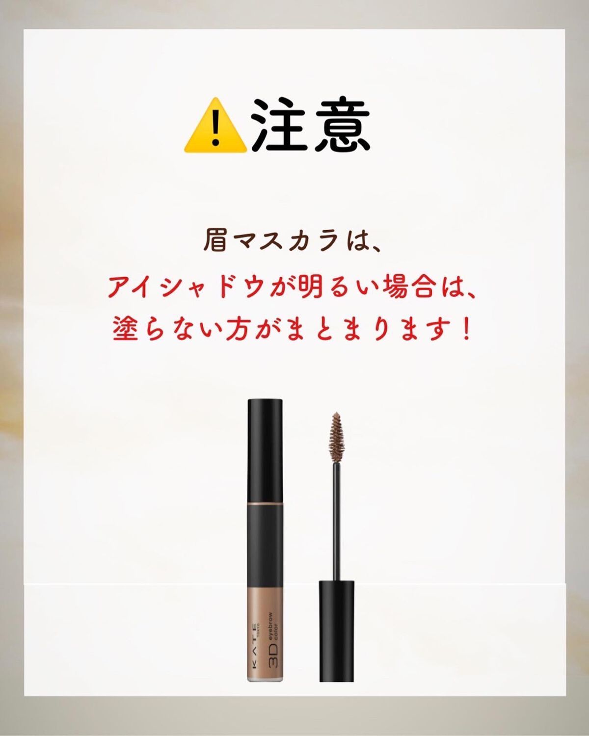 眉毛を頑張って描きすぎちゃうと主張が強くなりすぎてバランスが悪くなってしまう!という方はちょっと力を抜いて描いてみよう! 毛がしっかりある方は眉マスカラからするとバランスを取りやすいよ☝🏼✨ 毛が少ない方は頑張って眉育しよう! 眉毛と睫毛は唯一顔の中で飛び出ているパーツだからこそ、長さがあることでより立体的な顔になるよ🥰👌🏻