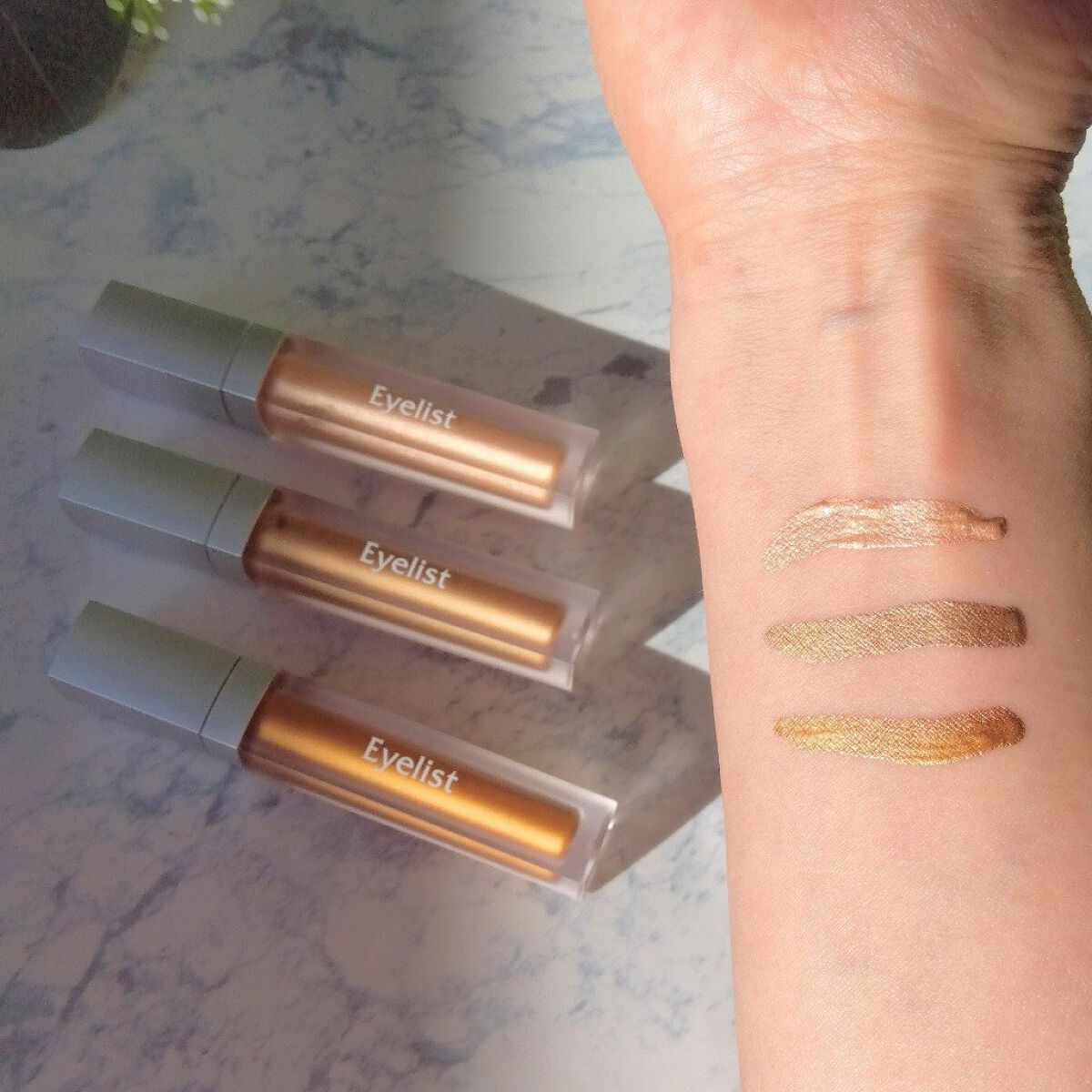 繊細な輝きで、目もとを艶やかに彩る。 多彩なラメやパールを配合し煌めく輝きと艶が立体感を生み出すリキッドアイシャドウ。 密着感の高いリキッドアイシャドウです。肌に乗せたらすぐにぼかすのがポイントです。 BRN01 細かいラメ感。メタリックにも見えます。あまり伸びませんでした。 AUR01 大粒ラメがとてもきらめきます。ベースにも、あとから乗せても使いやすいです。伸びが良く広範囲に使えます。 ORN01 ブラウンの色違いな感じでした。細かいラメ感。メタリックにも見えます。あまり伸びませんでした。